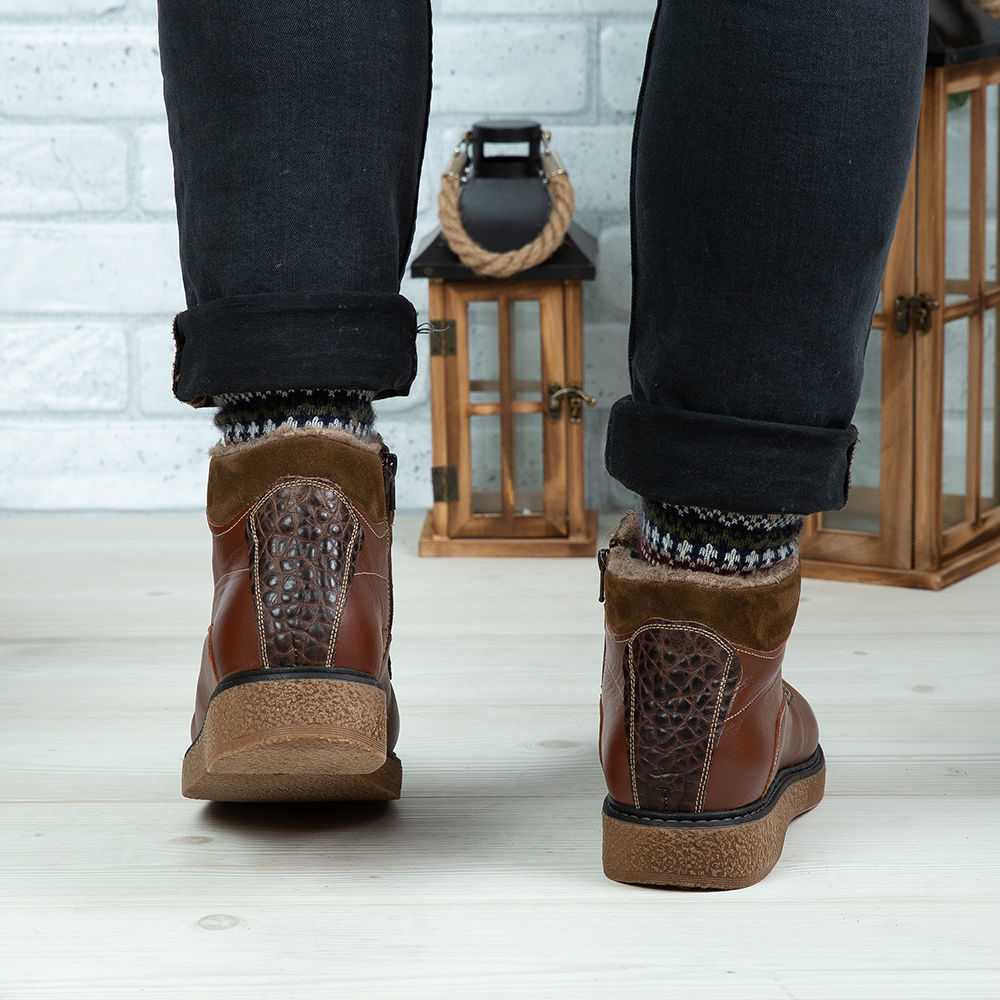 Ghete din piele naturală de culoare maro.