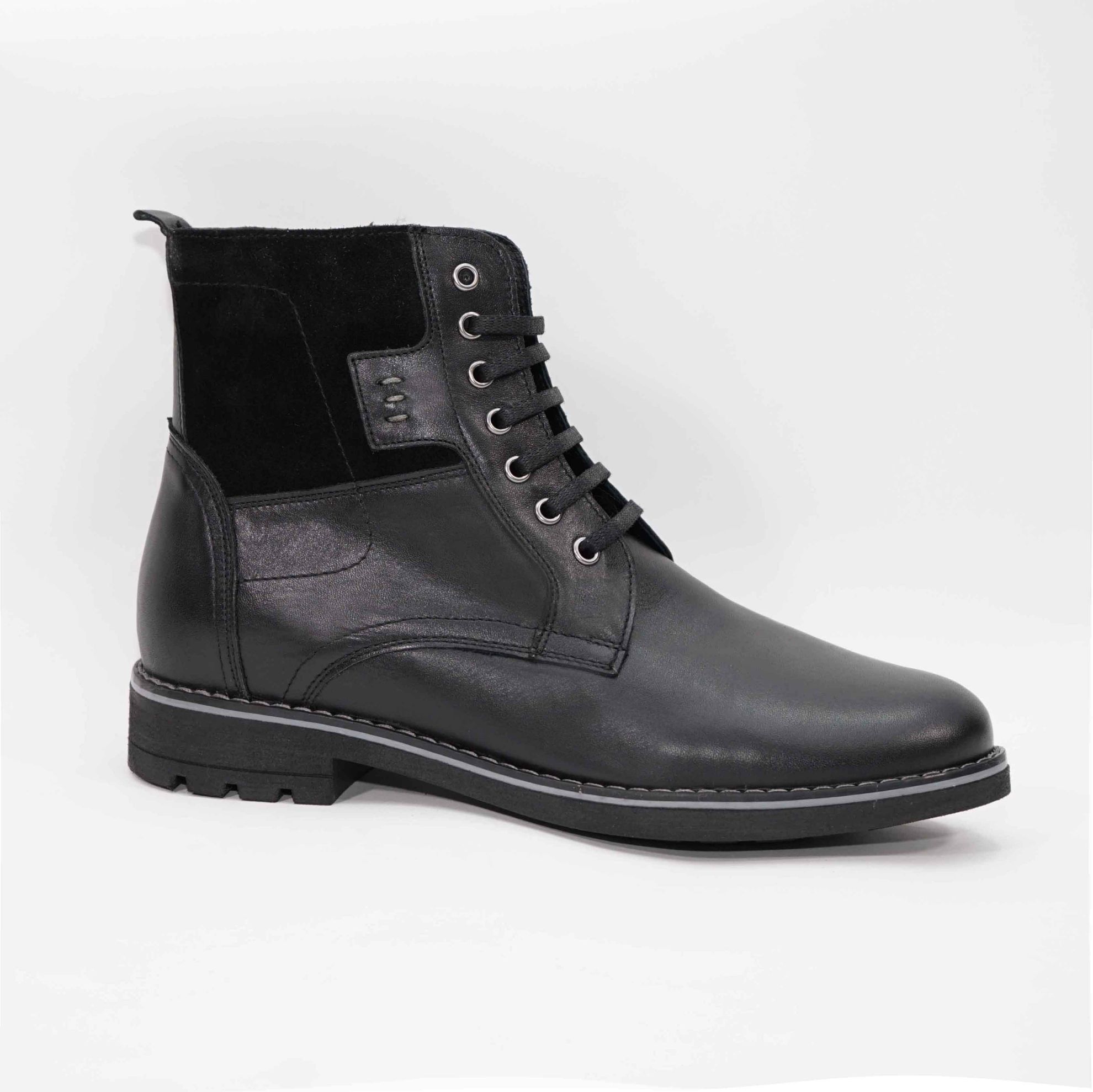 Ghete barbati din piele naturala de culoare neagra, cu interior confortabil si bine imblanite cu talpa din cauciuc natural antiderapanta.