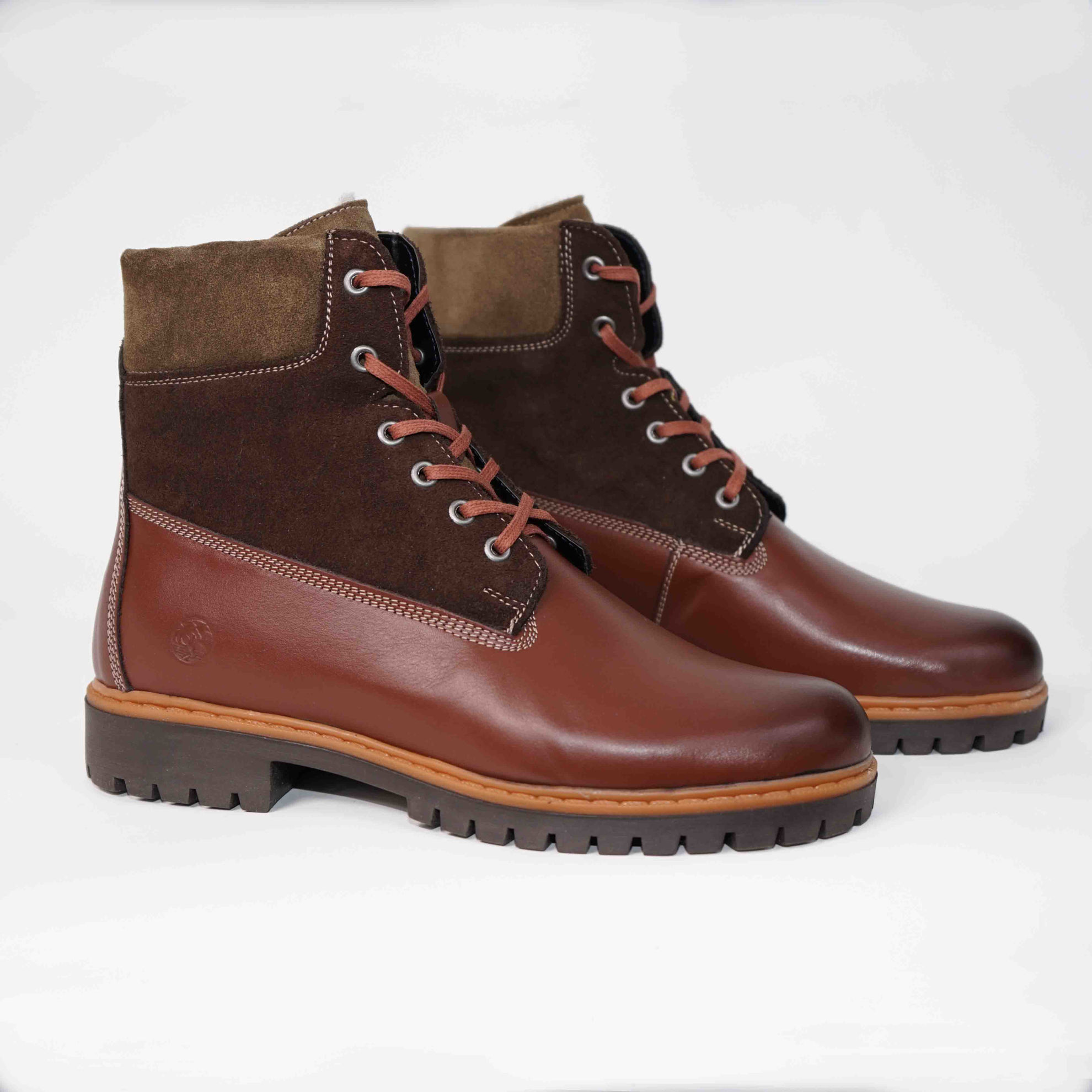 Ghete bărbați din piele naturală de culoare maro, cu interior confortabil din blană și talpă din TR.