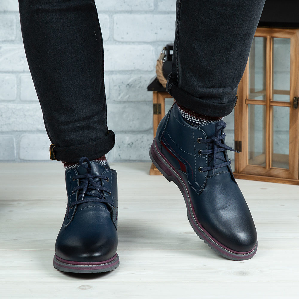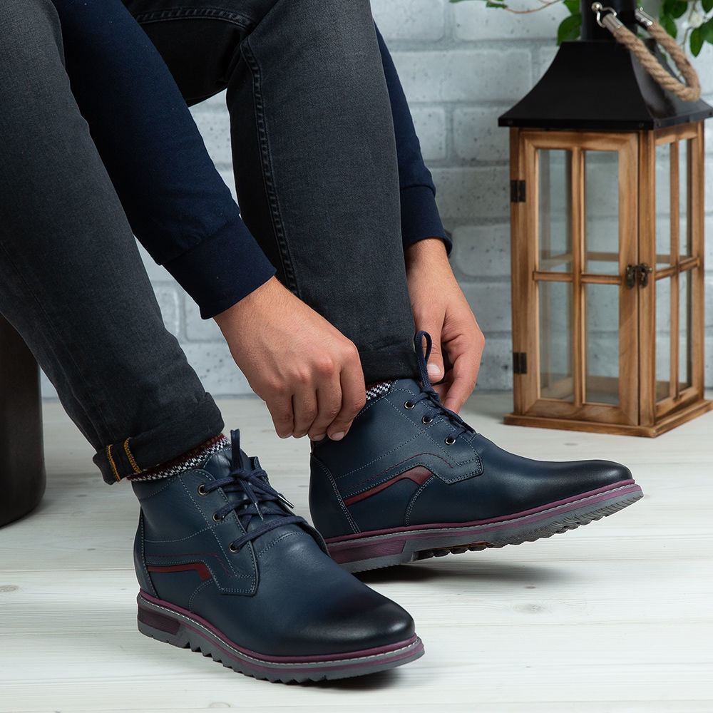 Ghete bărbați din piele naturală de culoare bleumarin, cu interior confortabil din blană  și talpă TR expandat.