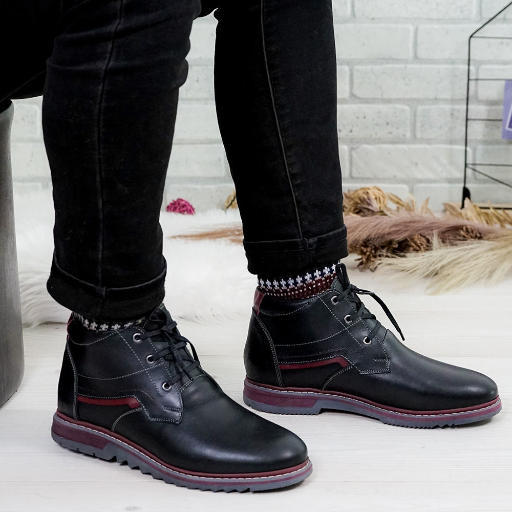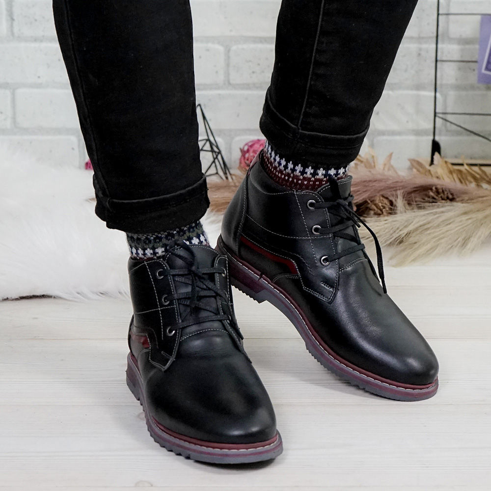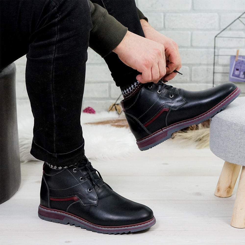Ghete bărbați din piele naturală de culoare neagră, cu interior confortabil din blană și talpă foarte ușoară antiderapantă.