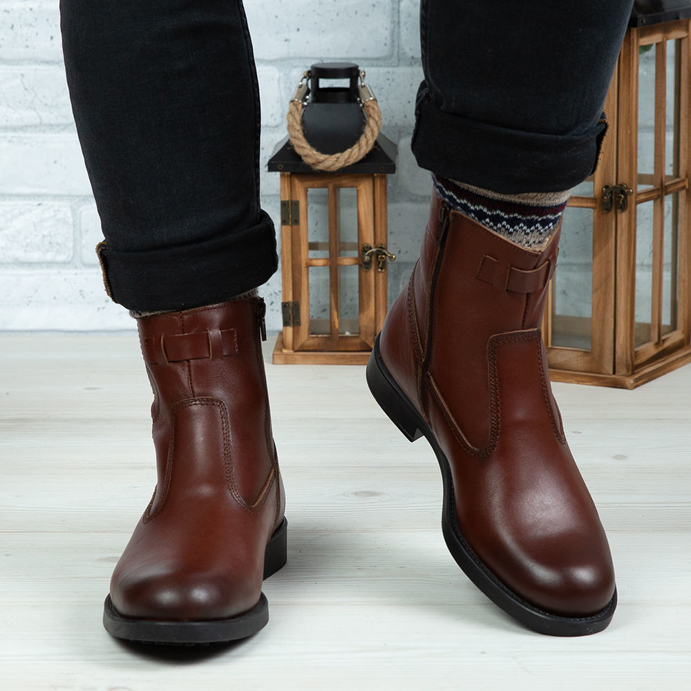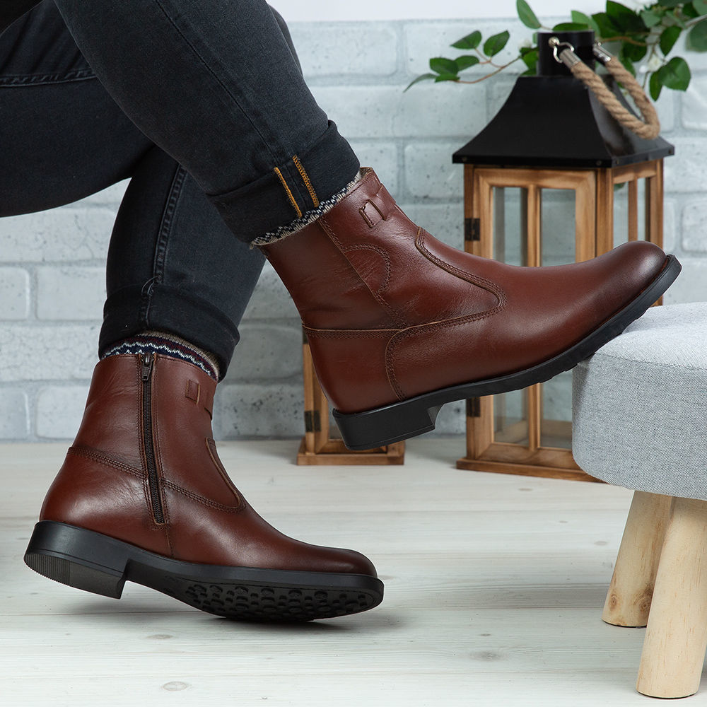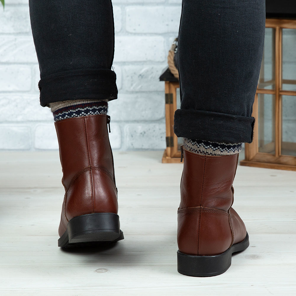 Ghete bărbați din piele naturală de culoare maro, cu interior confortabil din blană și talpă TR.