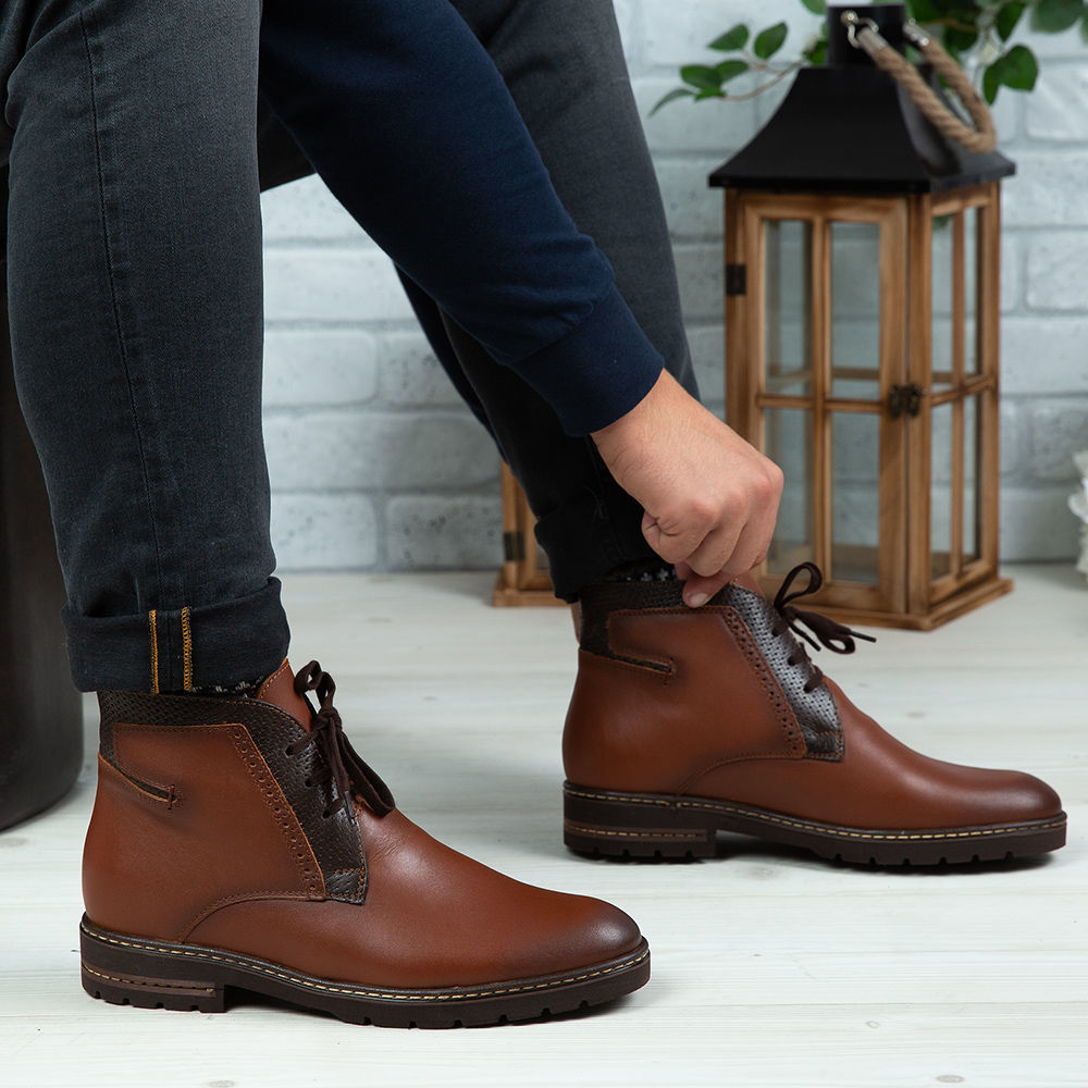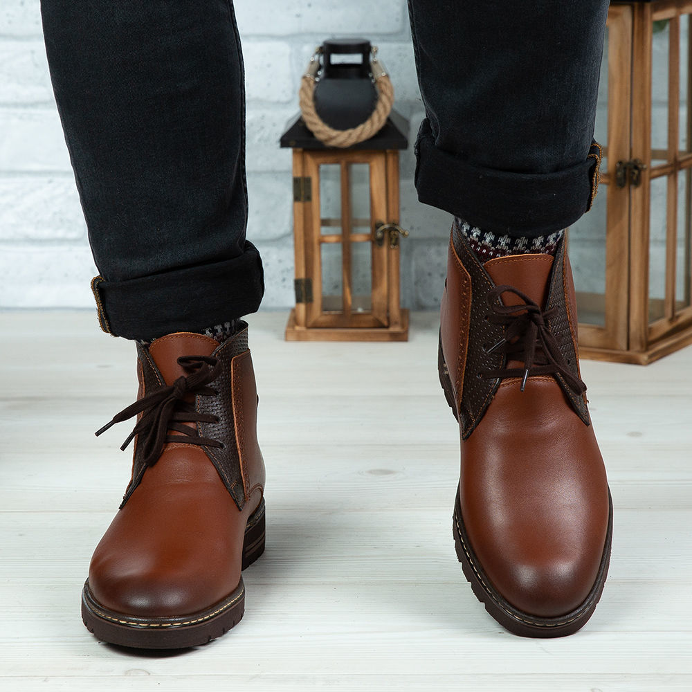 Ghete bărbați din piele naturală de culoare maro, cu interior confortabil din blană  și talpă TR.