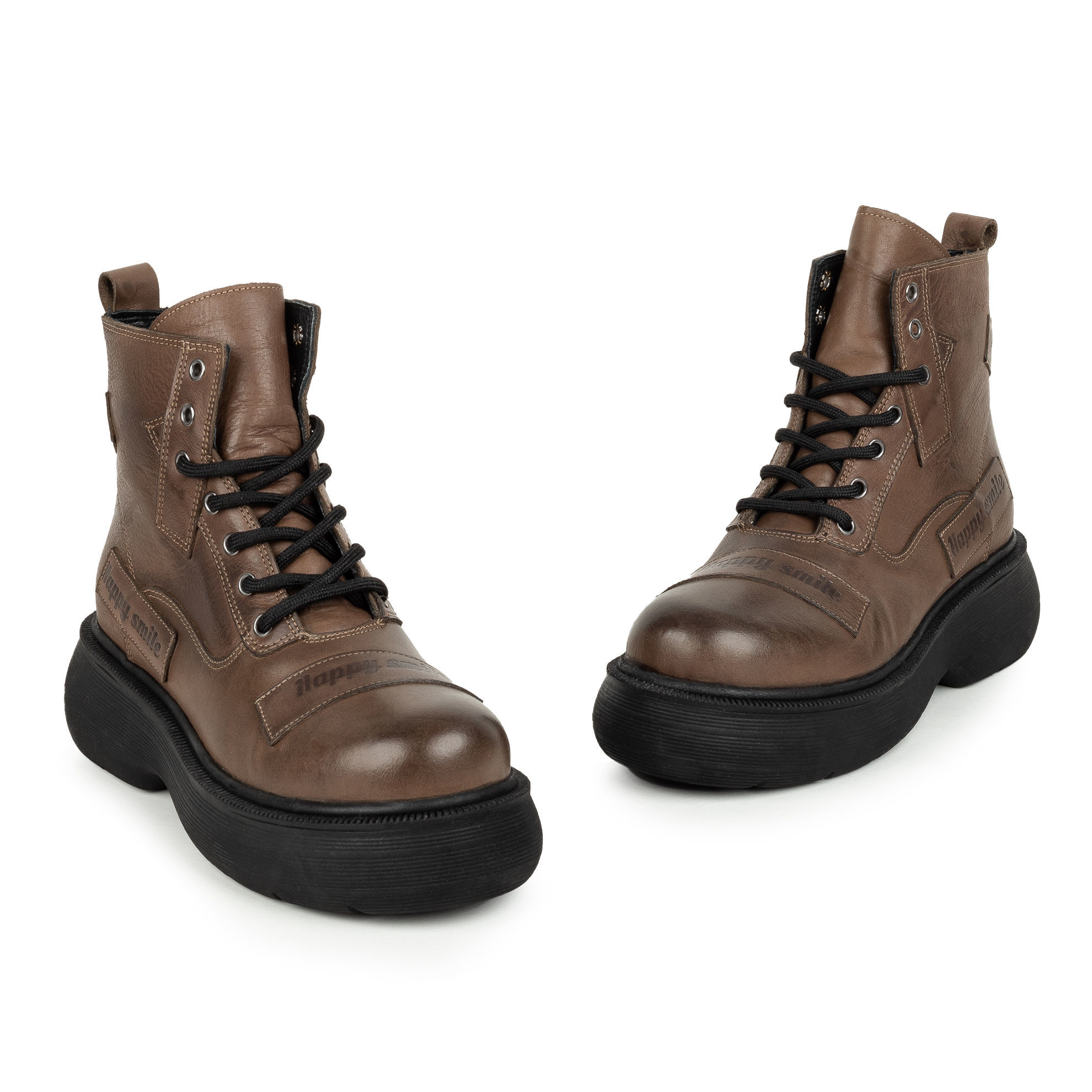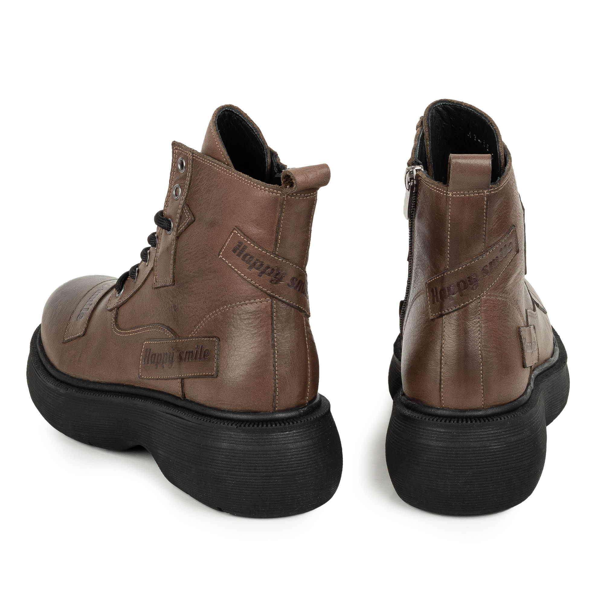 Ghete damă din piele naturală de culoare coffee, cu interior confortabil din blană și talpă antiderapantă.