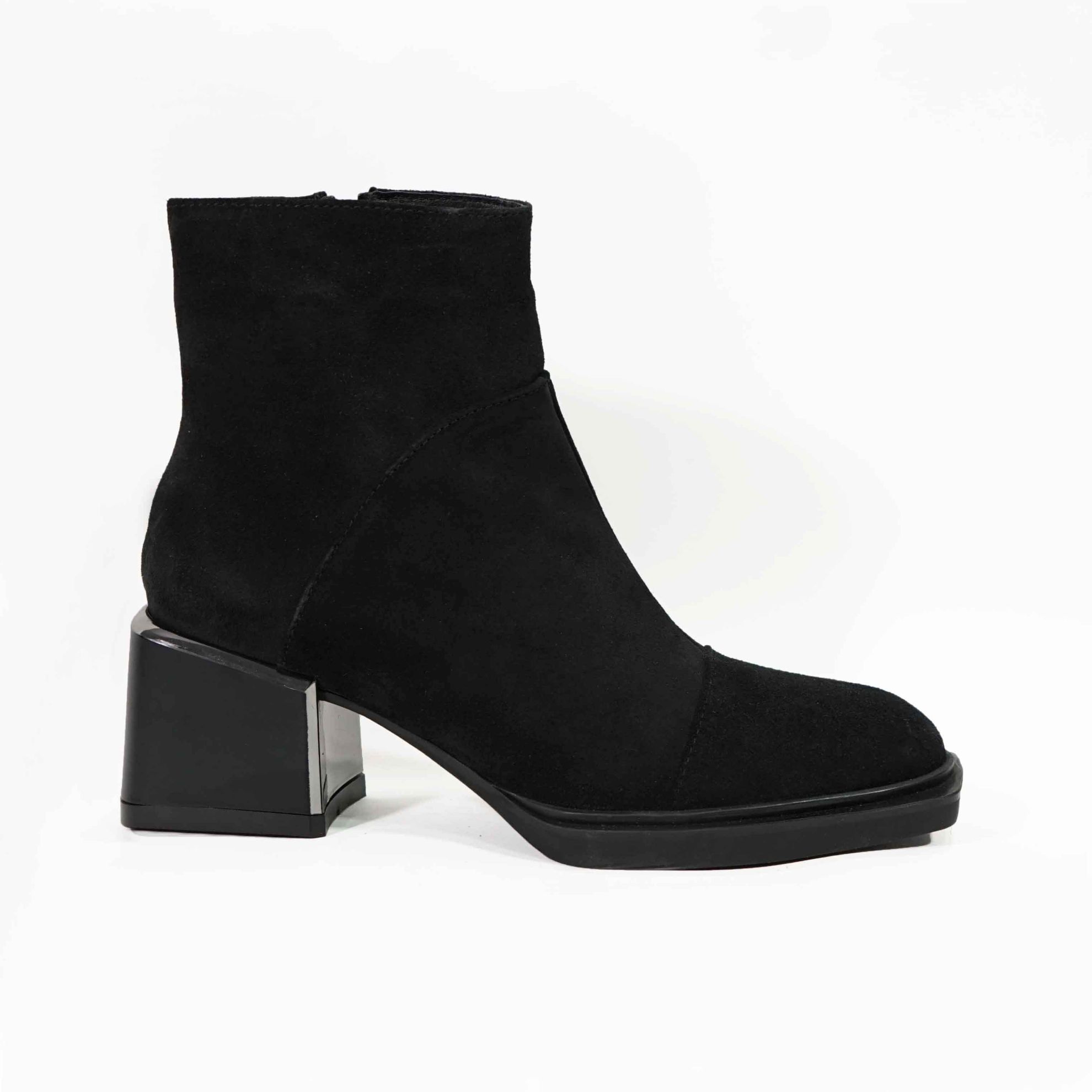 Ghete damă din piele naturală de culoare neagră velur, cu fermuar pe interior si cu interior confortabil imblanit și talpă cu toc aplicat de 6cm