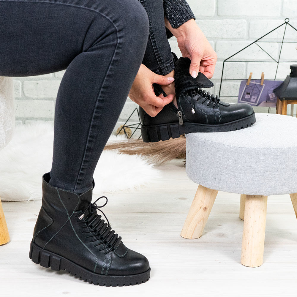 Ghete damă din piele naturală de culoare neagră, cu interior confortabil din blană și talpă antiderapantă din TR.