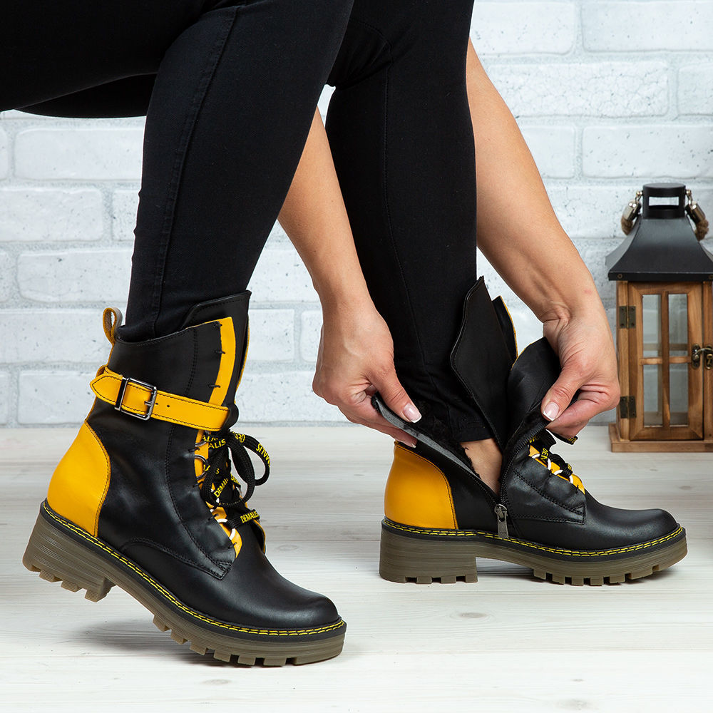 Ghete damă din piele naturală de culoare neagră, cu interior confortabil din blană și talpă TR usor.