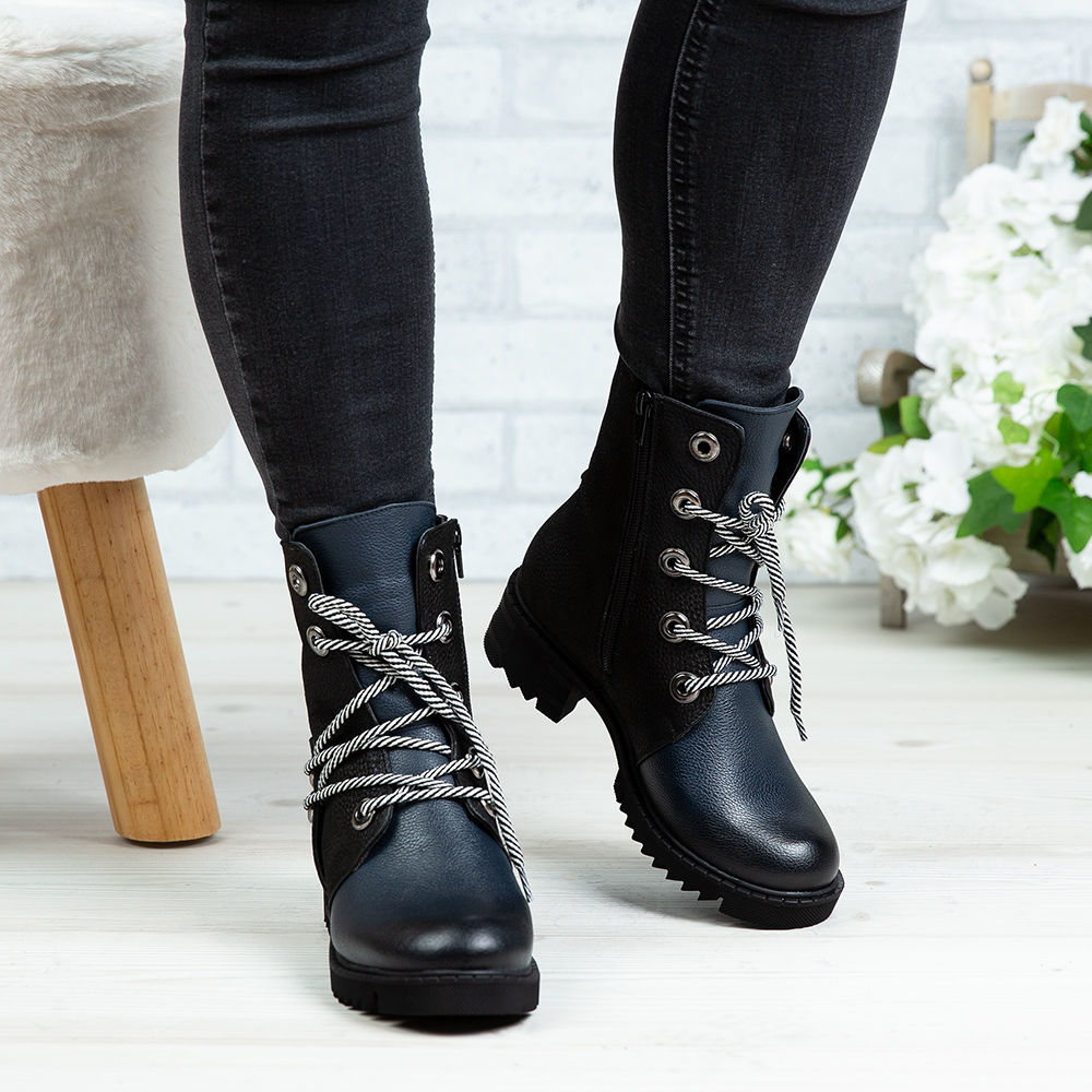 Ghete damă din piele naturală de culoare bleumarin, cu interior confortabil din blană și talpă TR.