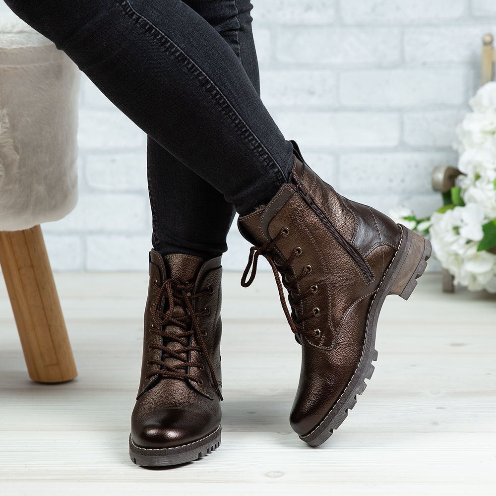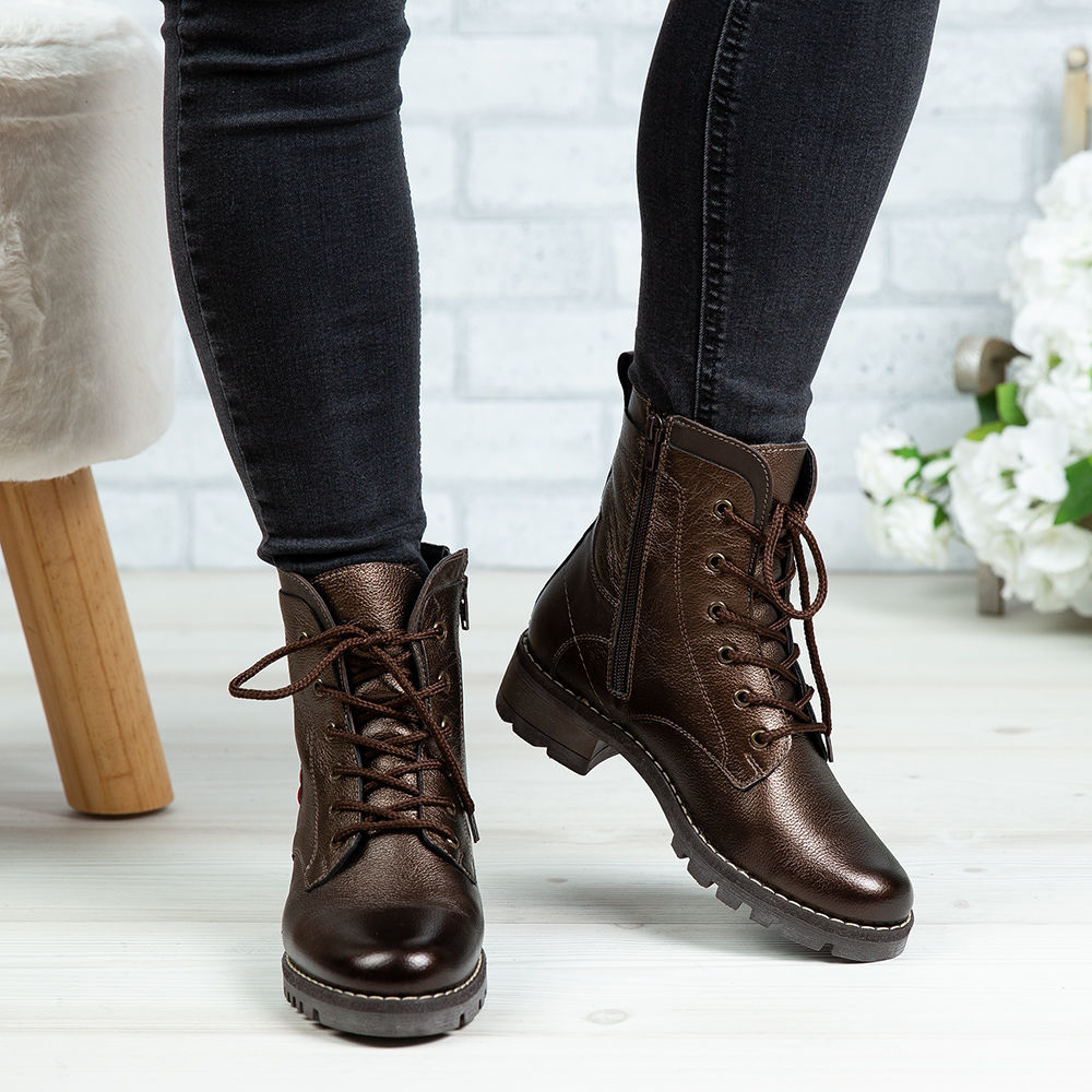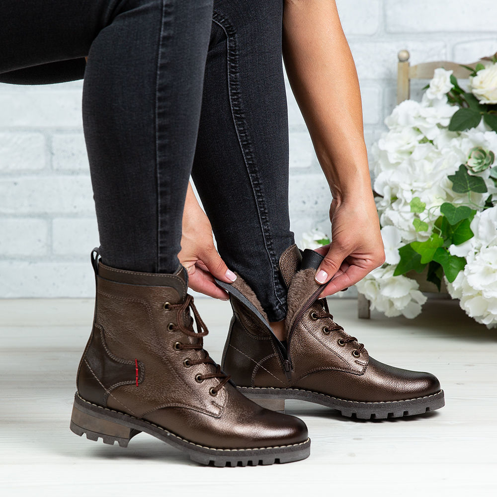 Ghete damă din piele naturală de culoare maro, cu interior confortabil din blană și talpă extra light ( usoara ).