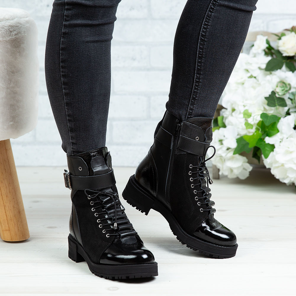 Ghete damă din piele naturală de culoare neagră, cu interior confortabil din blană și talpă din TR.