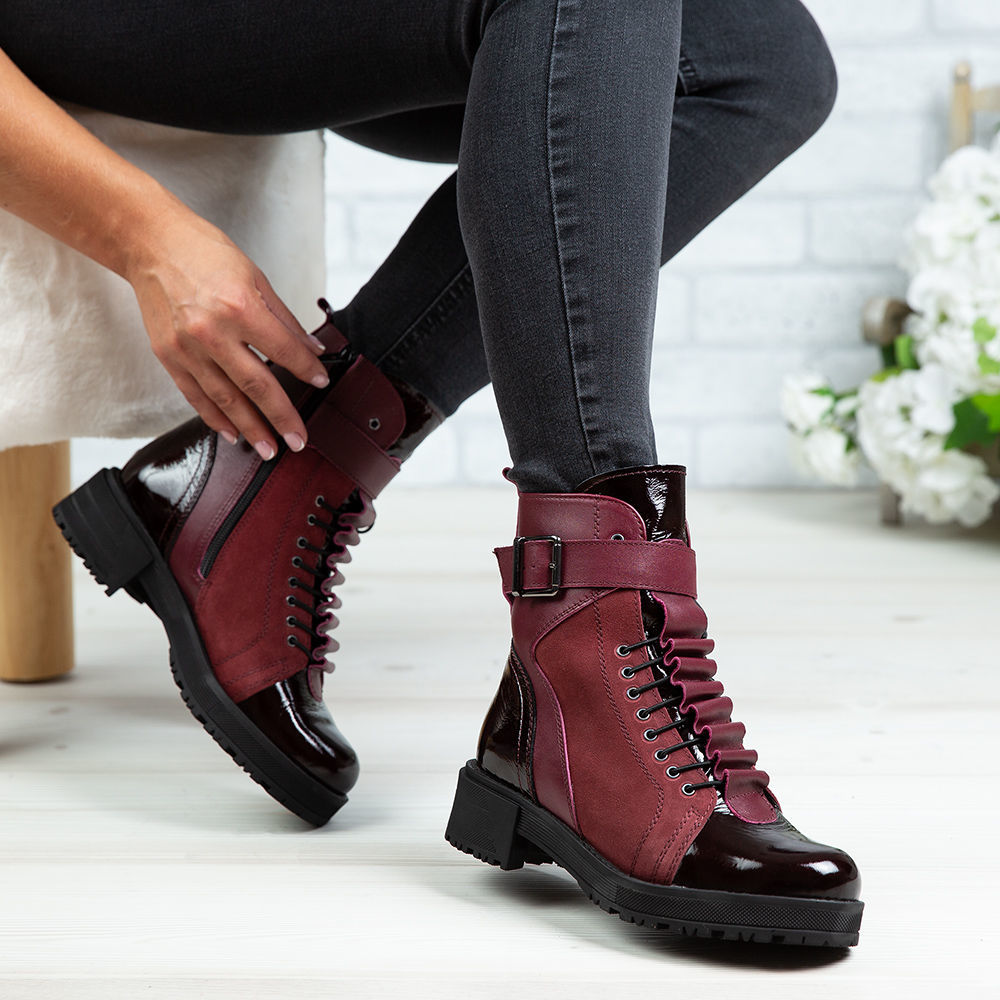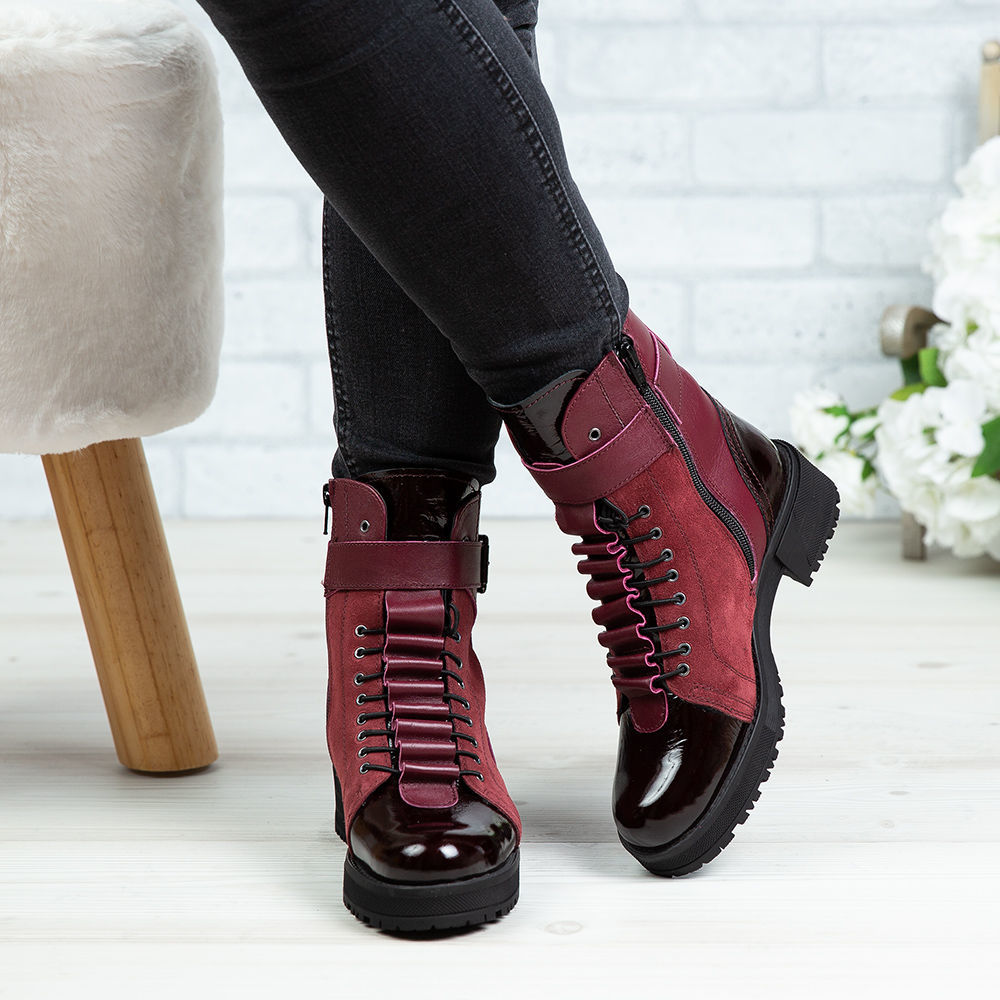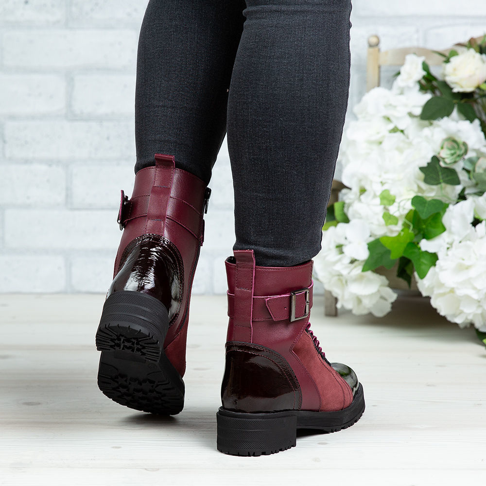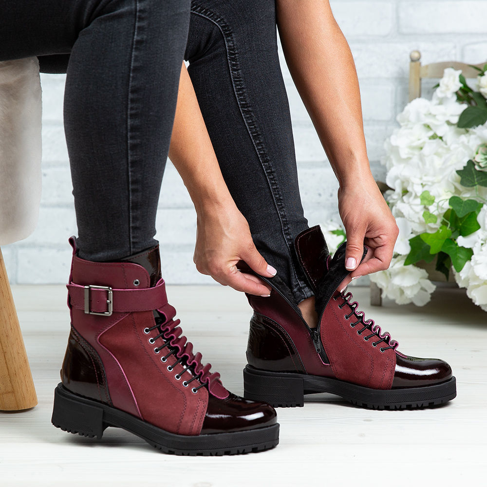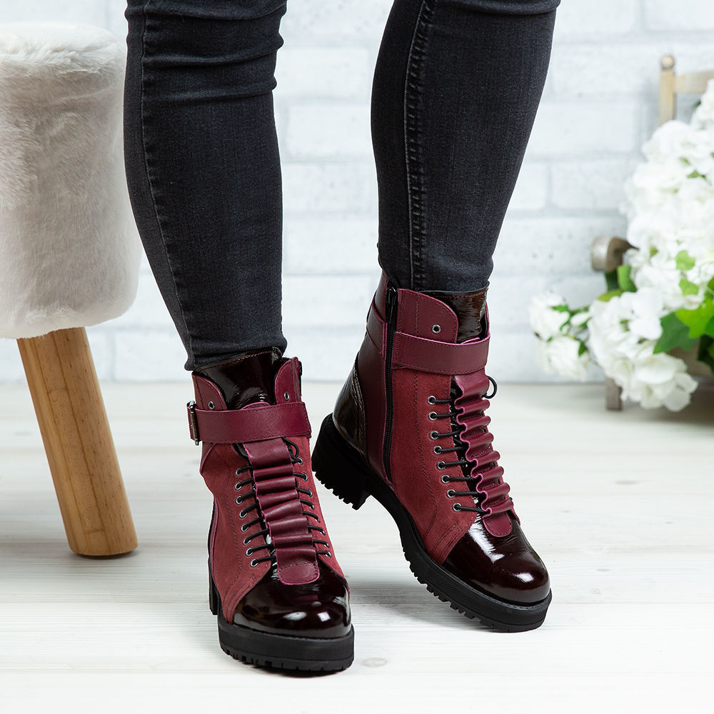 Ghete damă din piele naturală de culoare vișinie, cu interior confortabil din blană și talpă din TR.