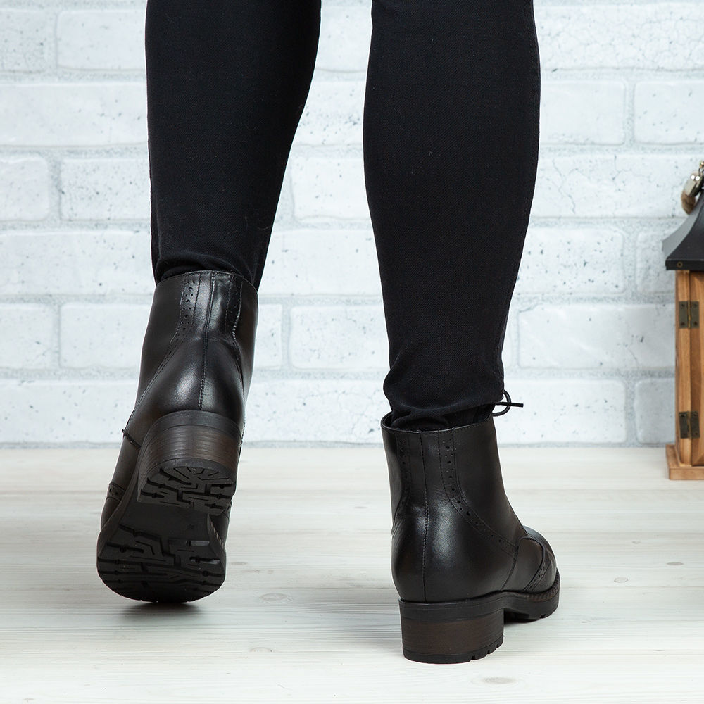 Ghete damă din piele naturală de culoare neagră, cu interior confortabil din blană și talpă ușoară microlight.