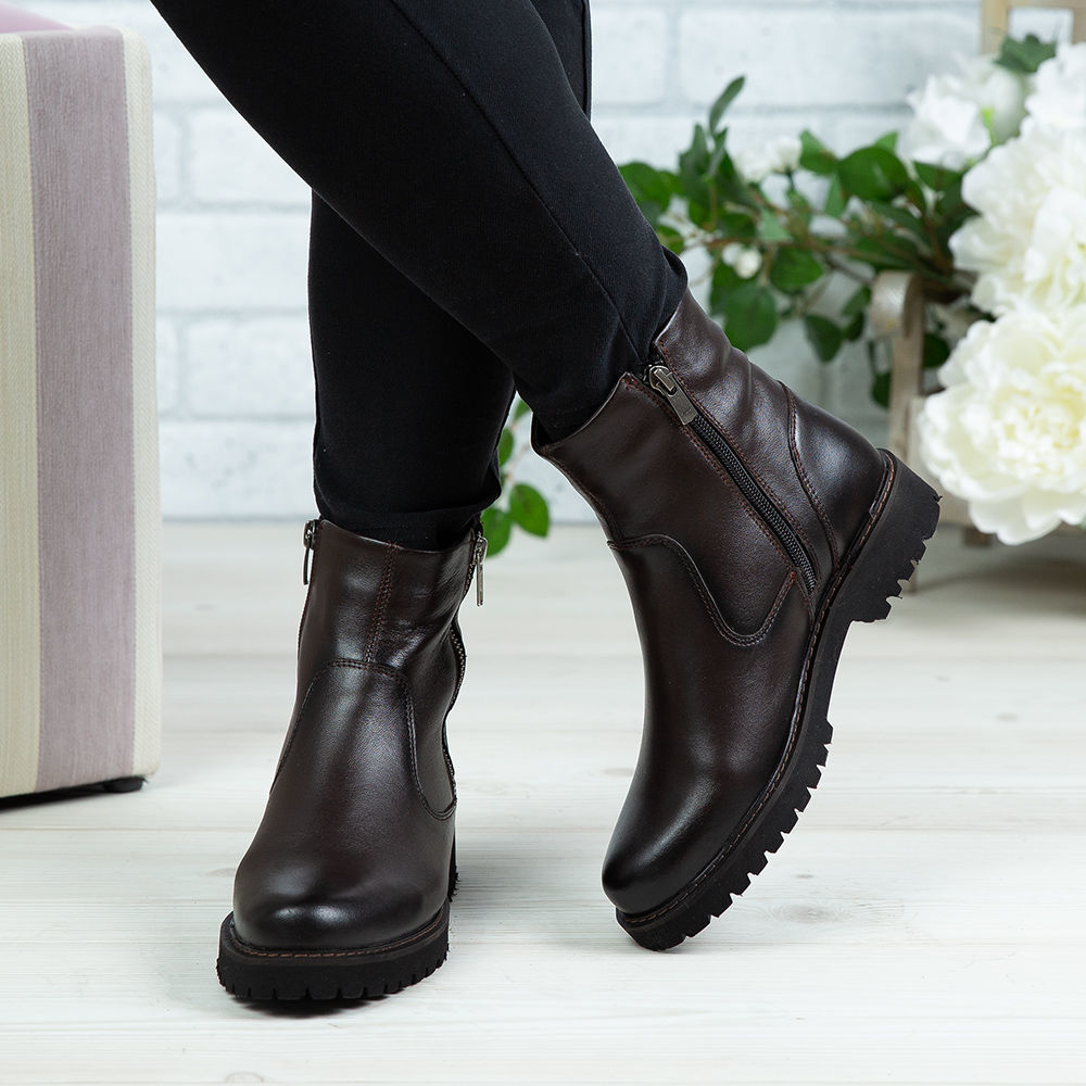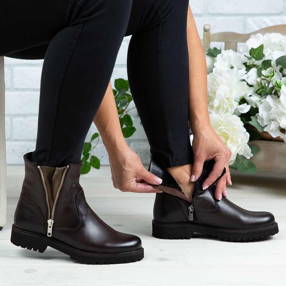 Ghete damă din piele naturală de culoare maro, cu interior confortabil din blană si talpa antiderapanta.