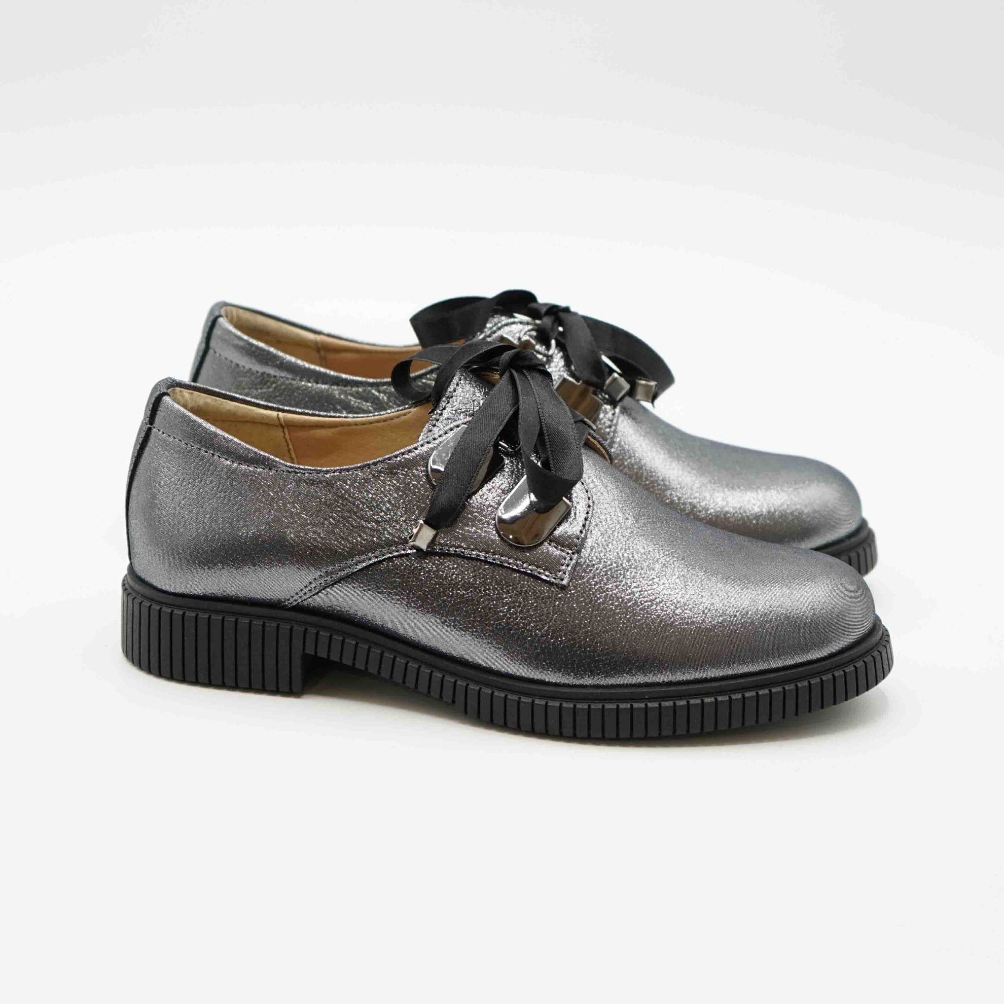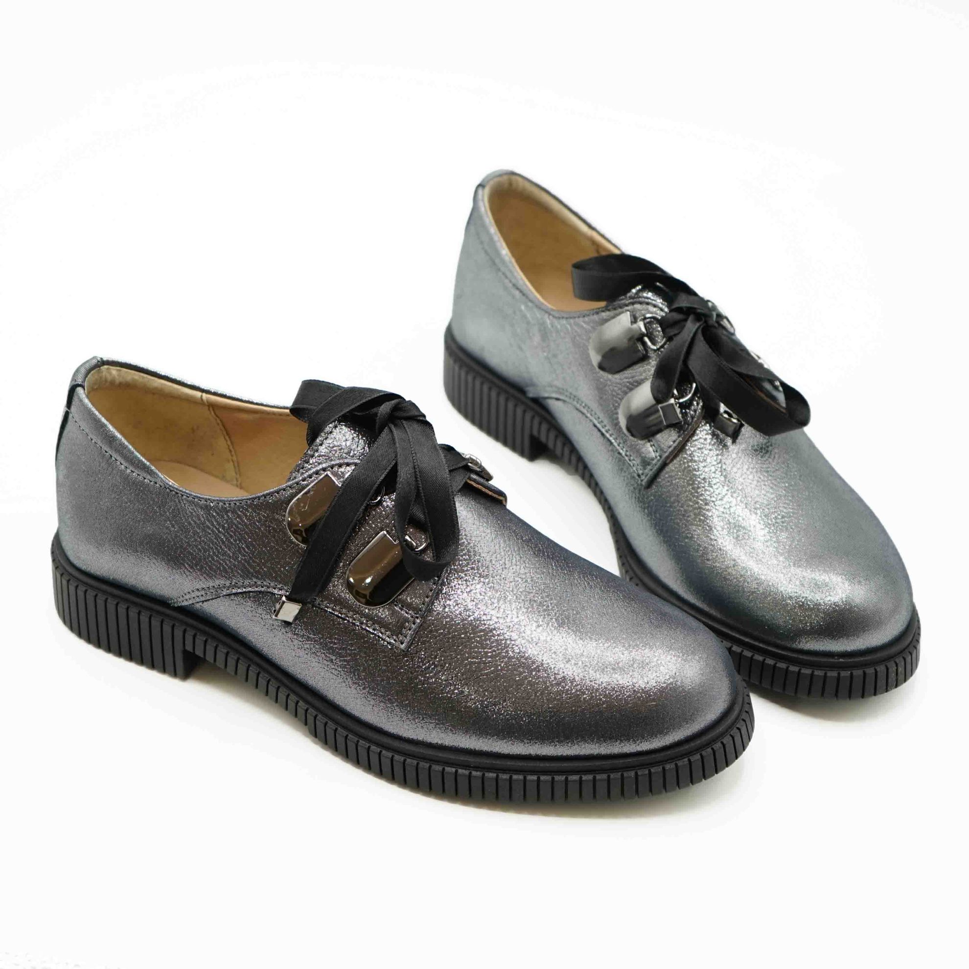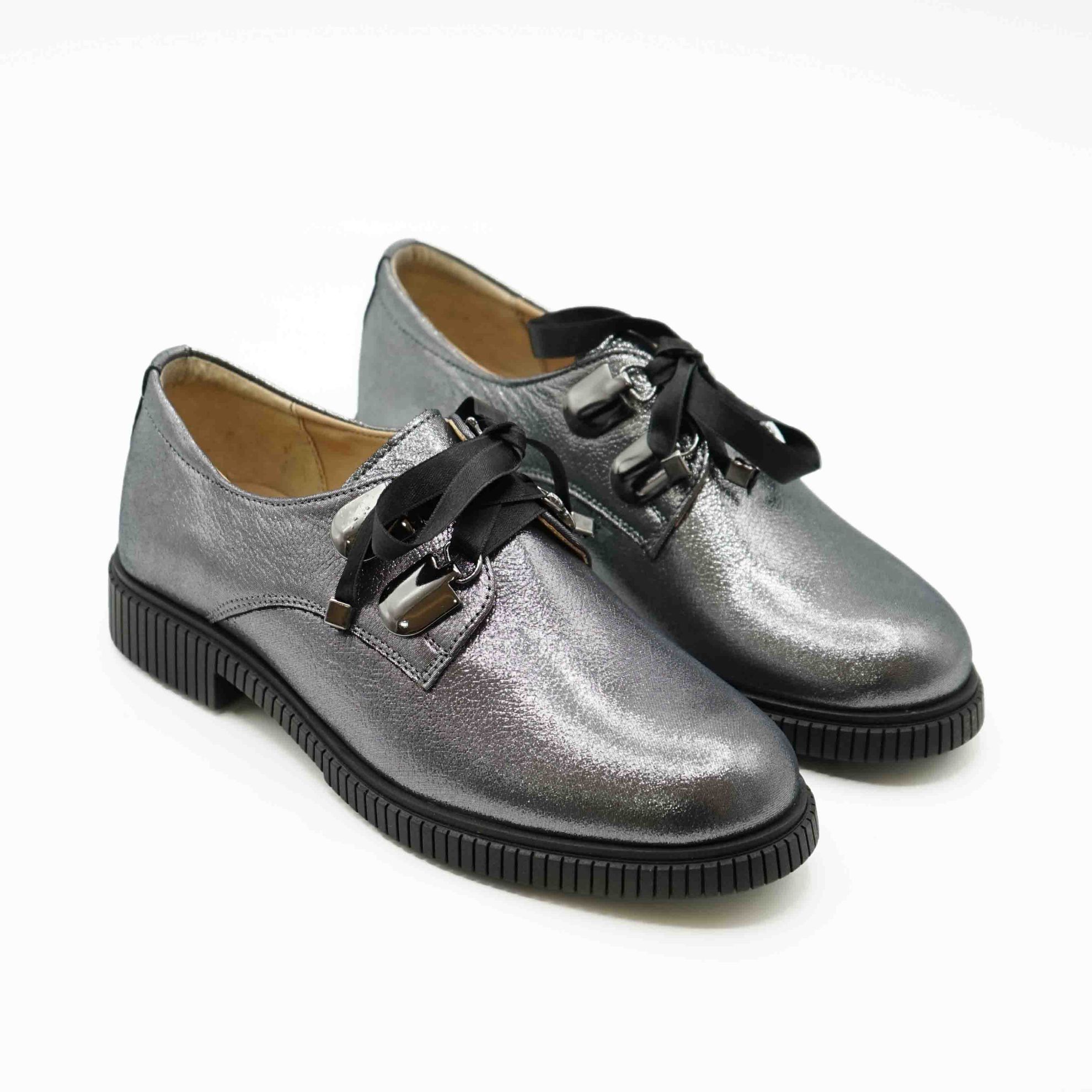 Pantof l 207 casual din piele naturala lacuita culoare argintie