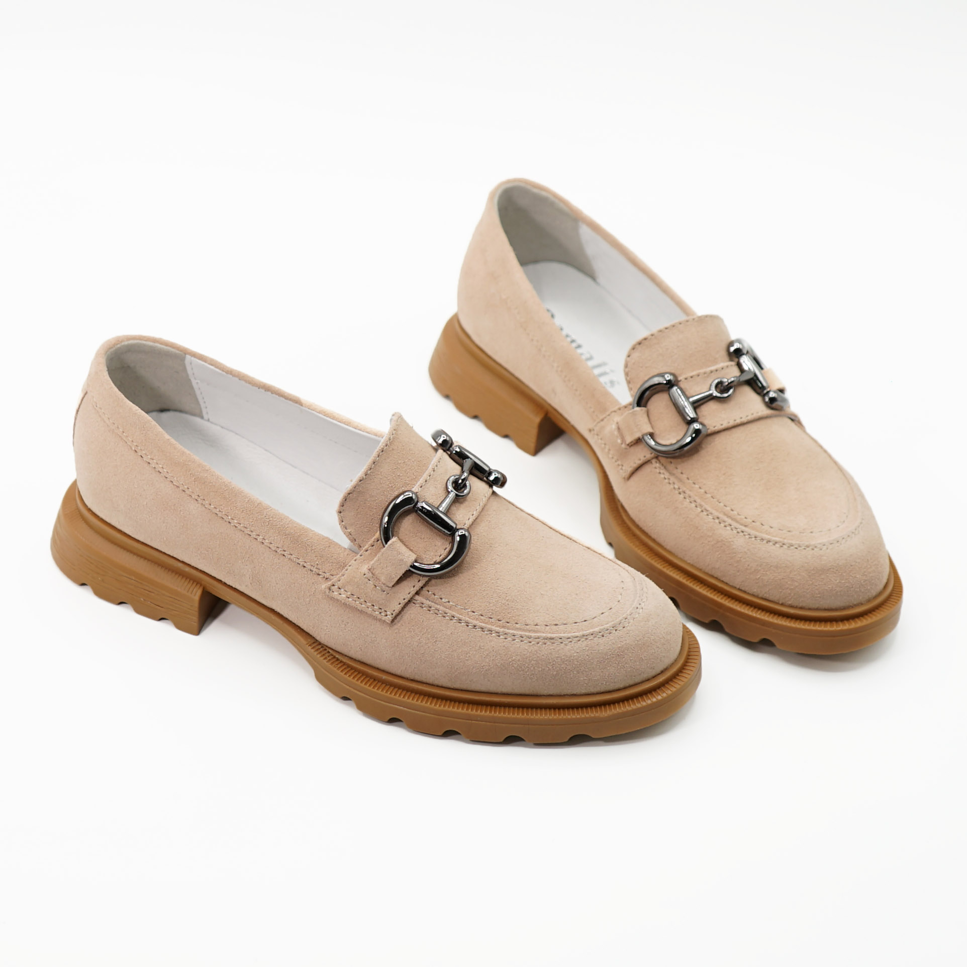 Mocasini damă din piele naturală întoarsă culoare roz pudră 130