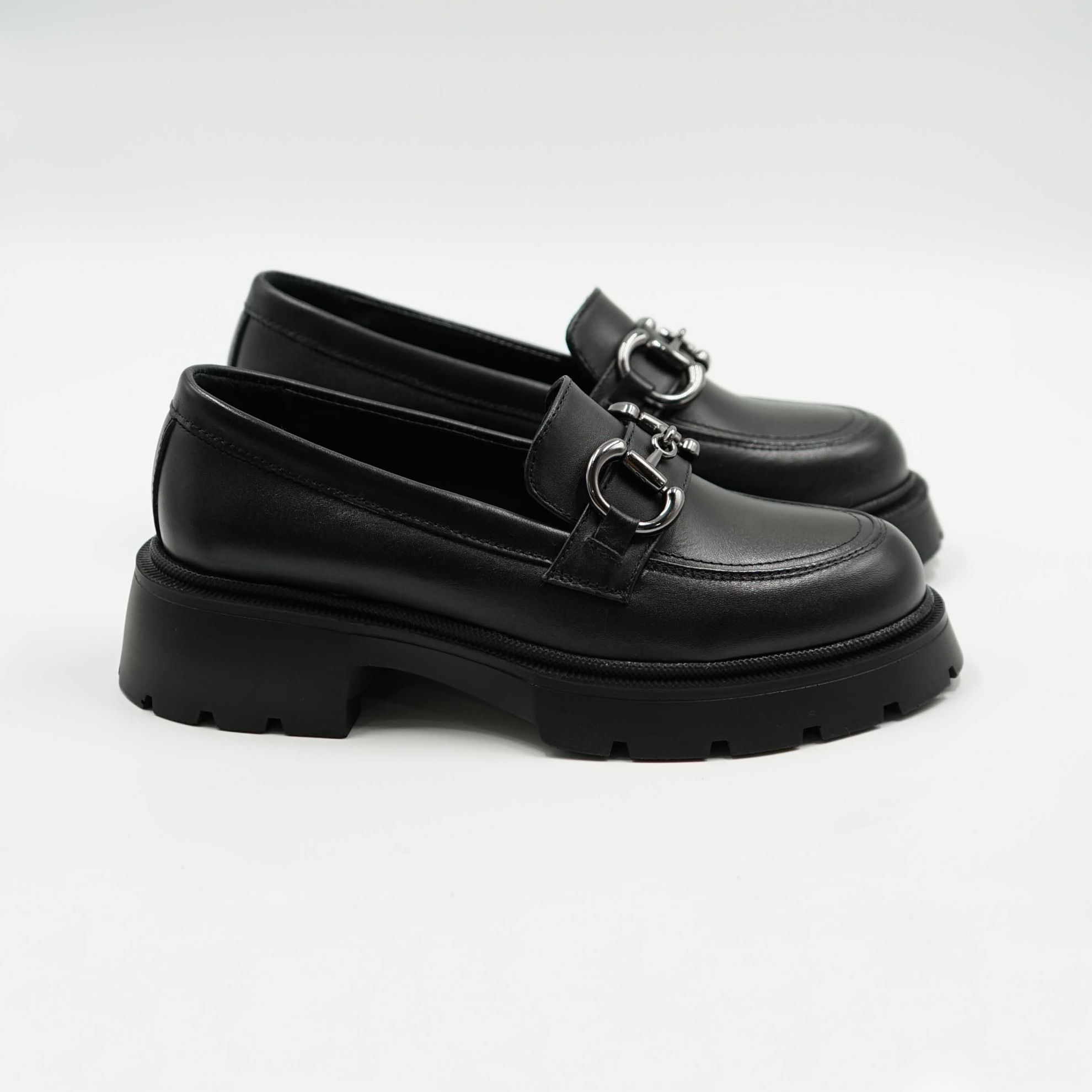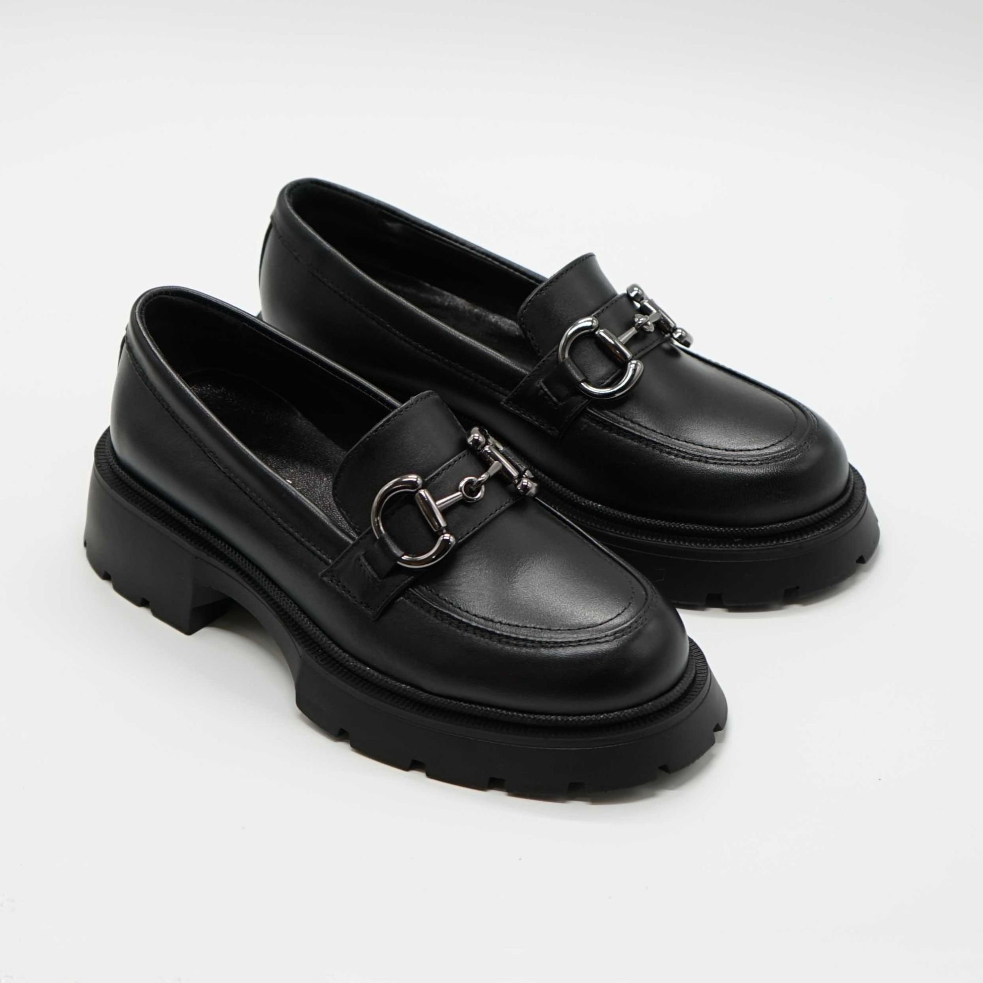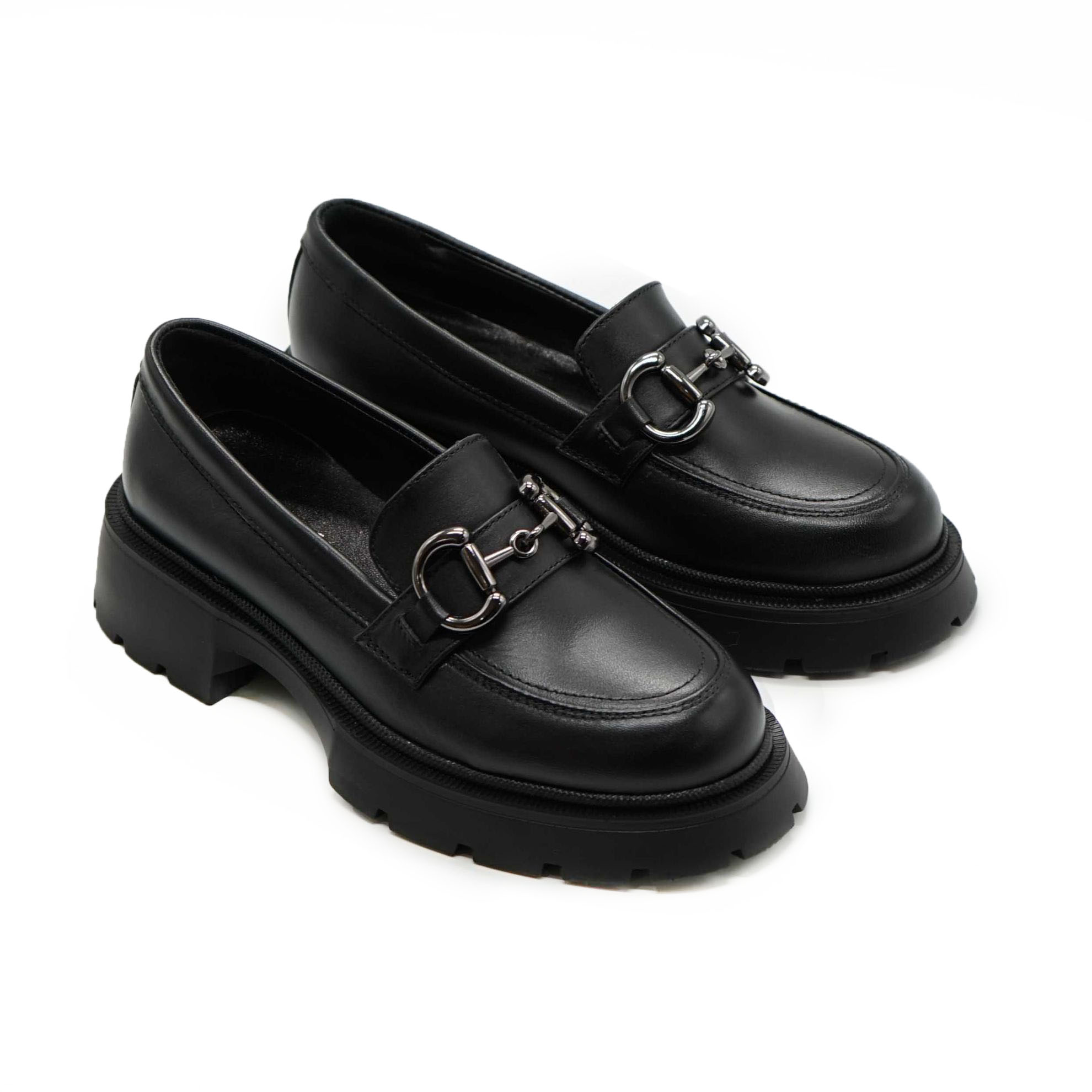 Mocasini damă negri cu talpă groasă din piele naturală 132