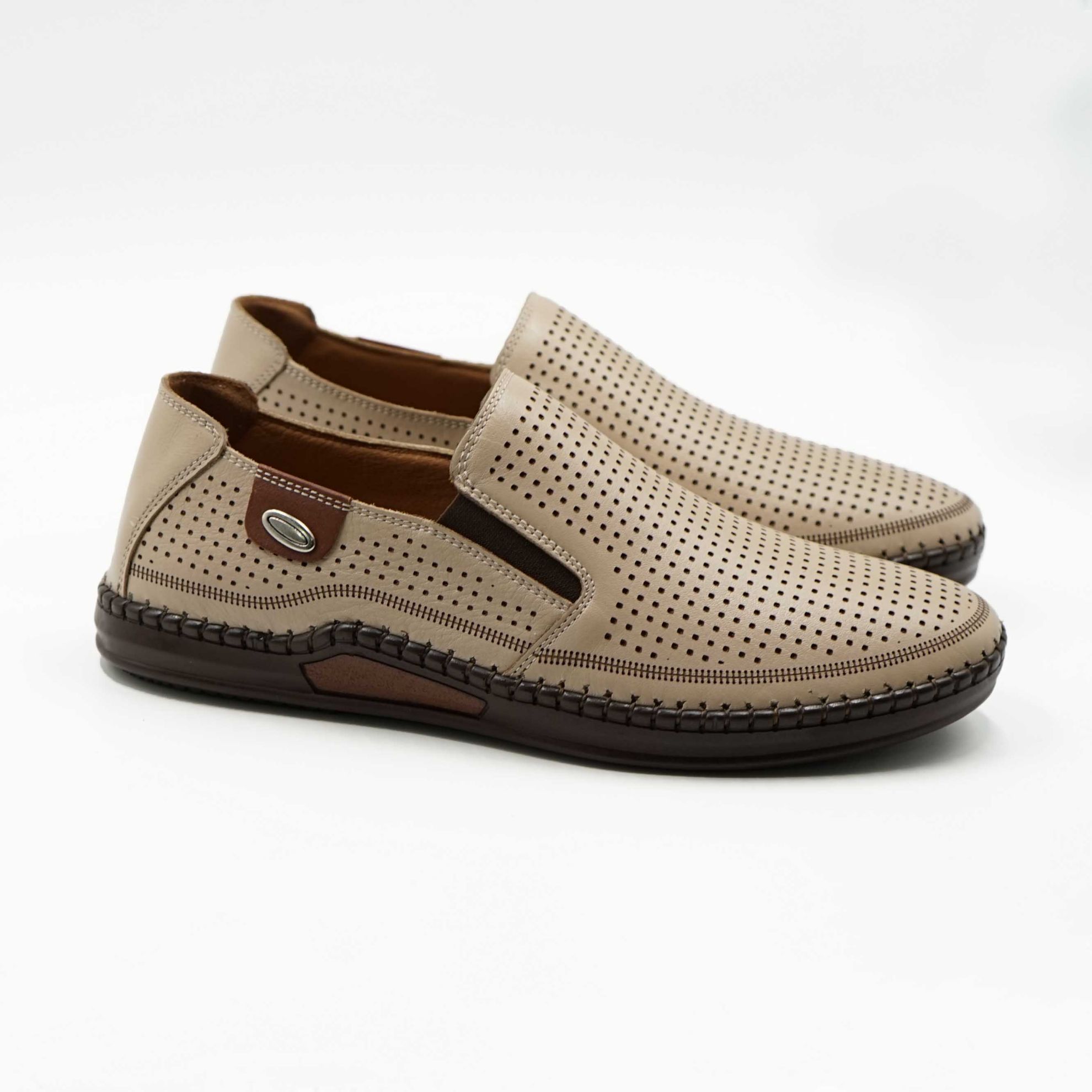 Mocasini bărbați din piele naturala culoare bej