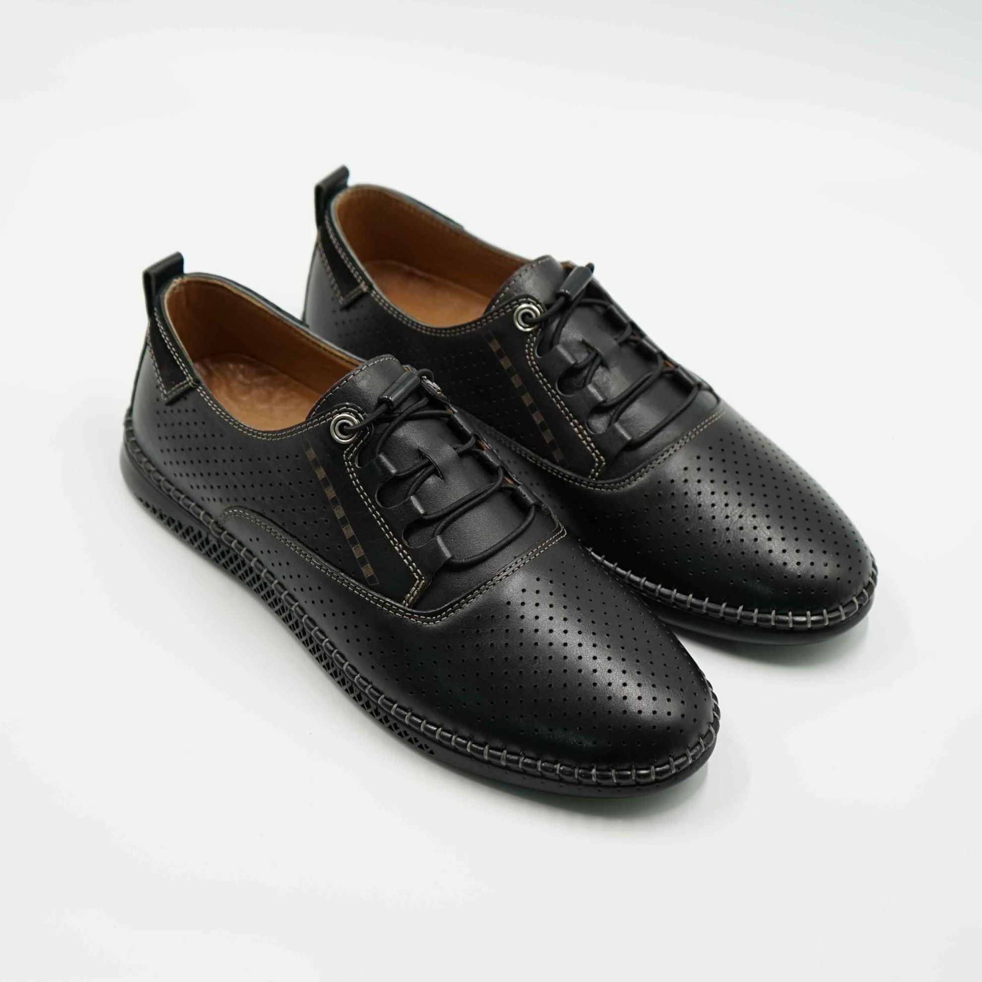 Pantofi 6574 casual din piele naturala culoare negru