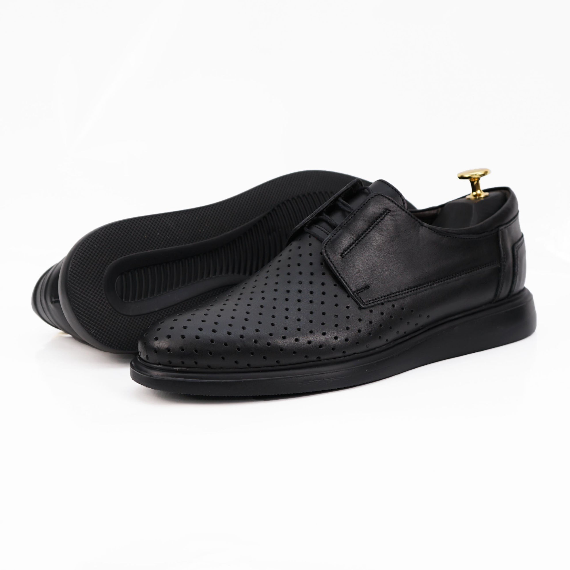 Mocasini bărbați piele naturală perforată de culoare neagră.