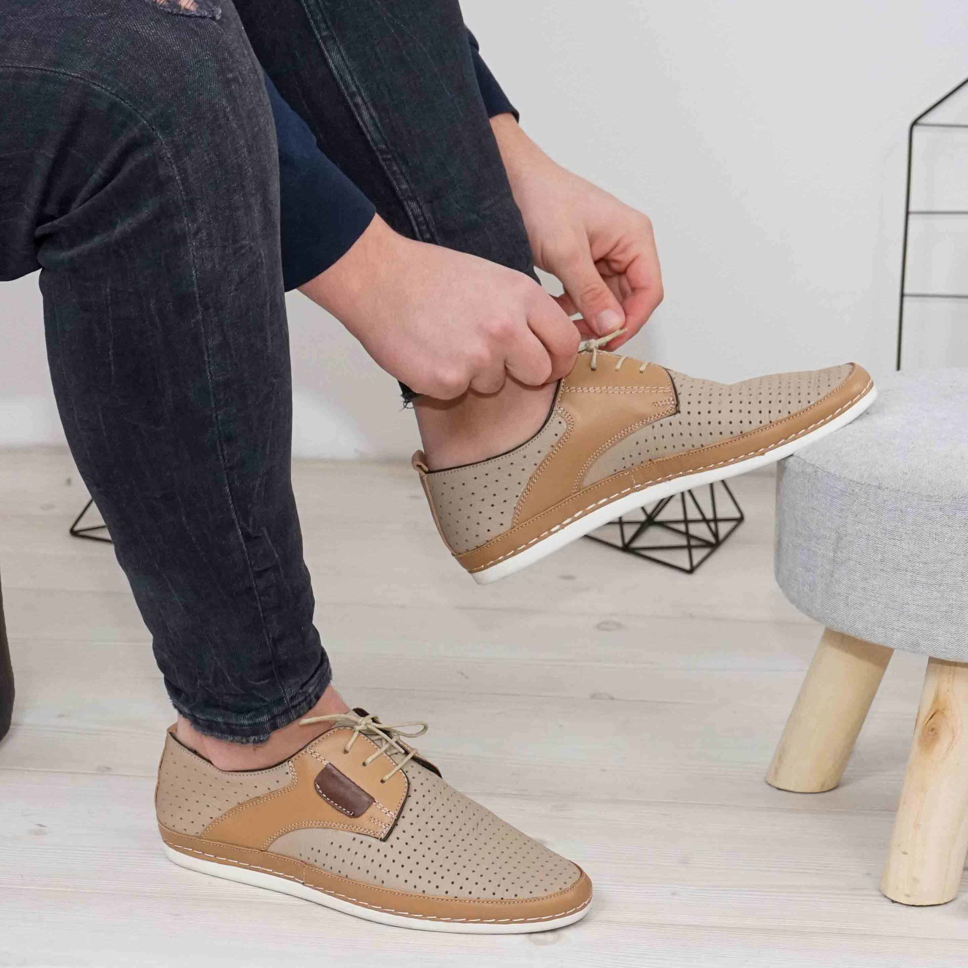 Pantofi casual bărbați piele naturală 690 perforat Bej