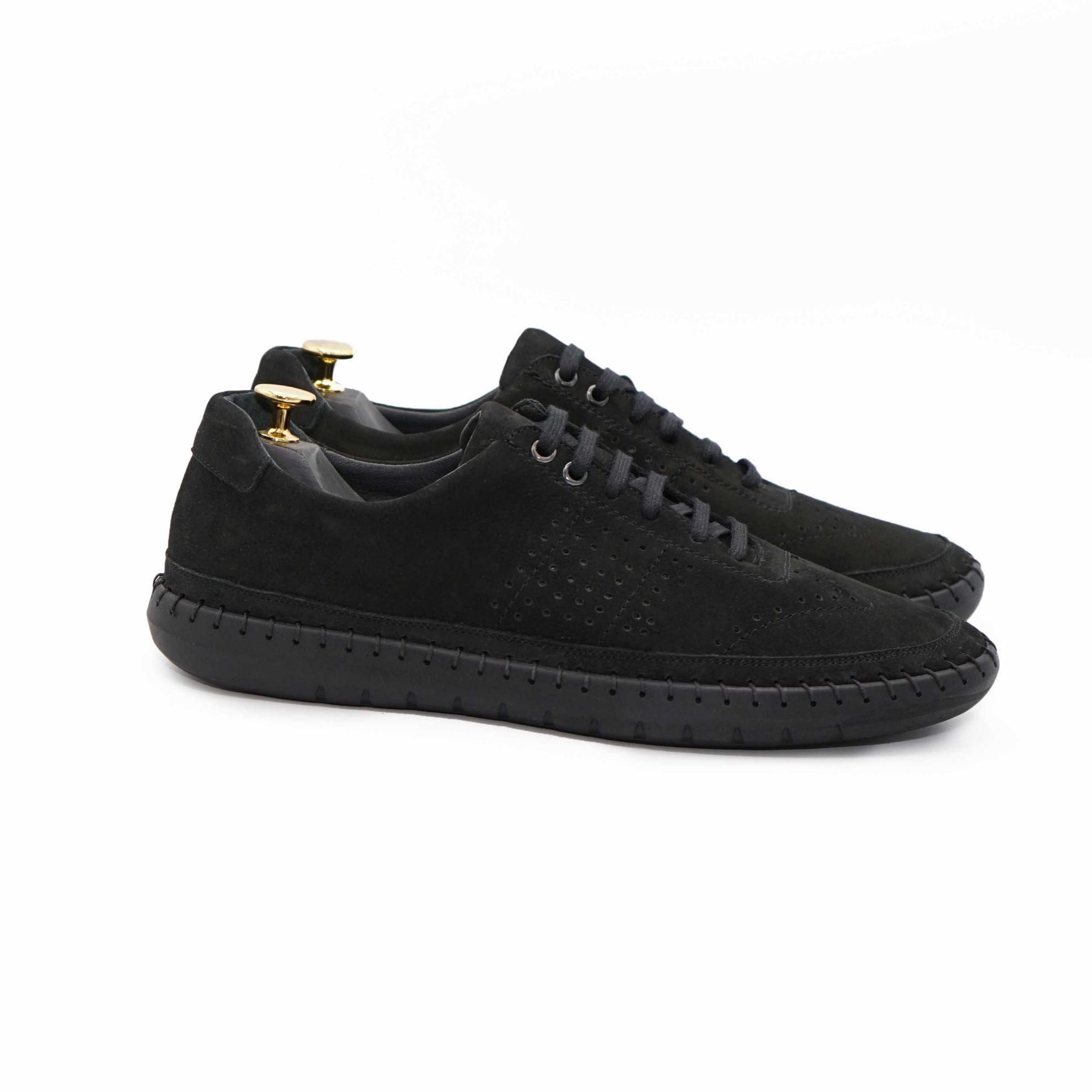 Pantofi casual bărbați din piele naturală de culoare negru, cu interior confortabil din piele naturală și talpă cusută manual, ușoară și flexibilă din POLIURETAN PU