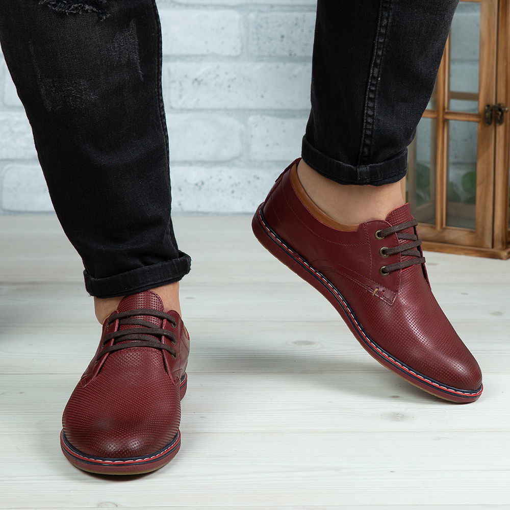 Pantofi casual bărbați din piele naturală de culoare vișinie, cu interior confortabil din piele naturală și talpă din TR.