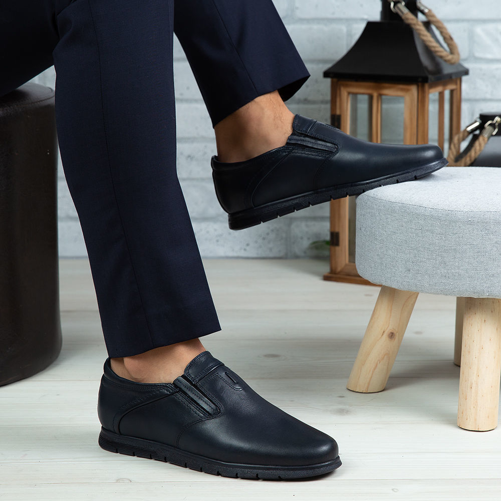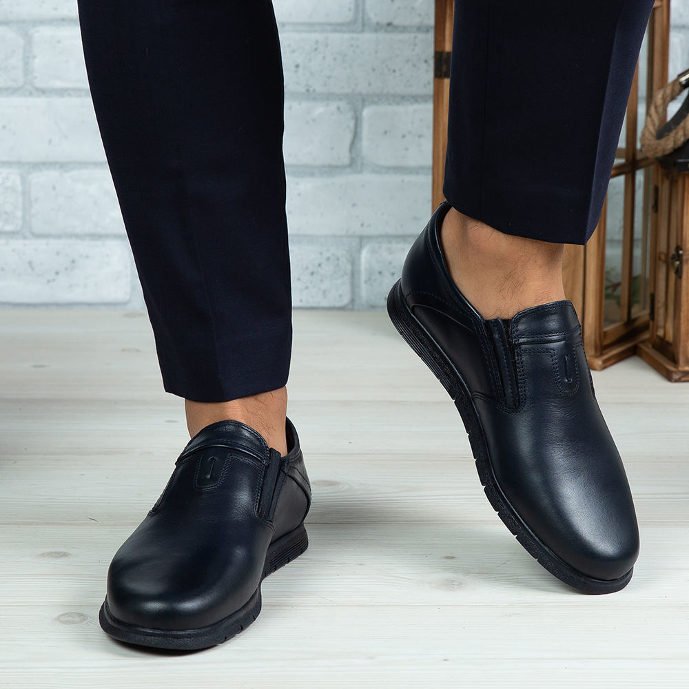 Pantofi eleganți din piele naturală de culoare bleumarin.