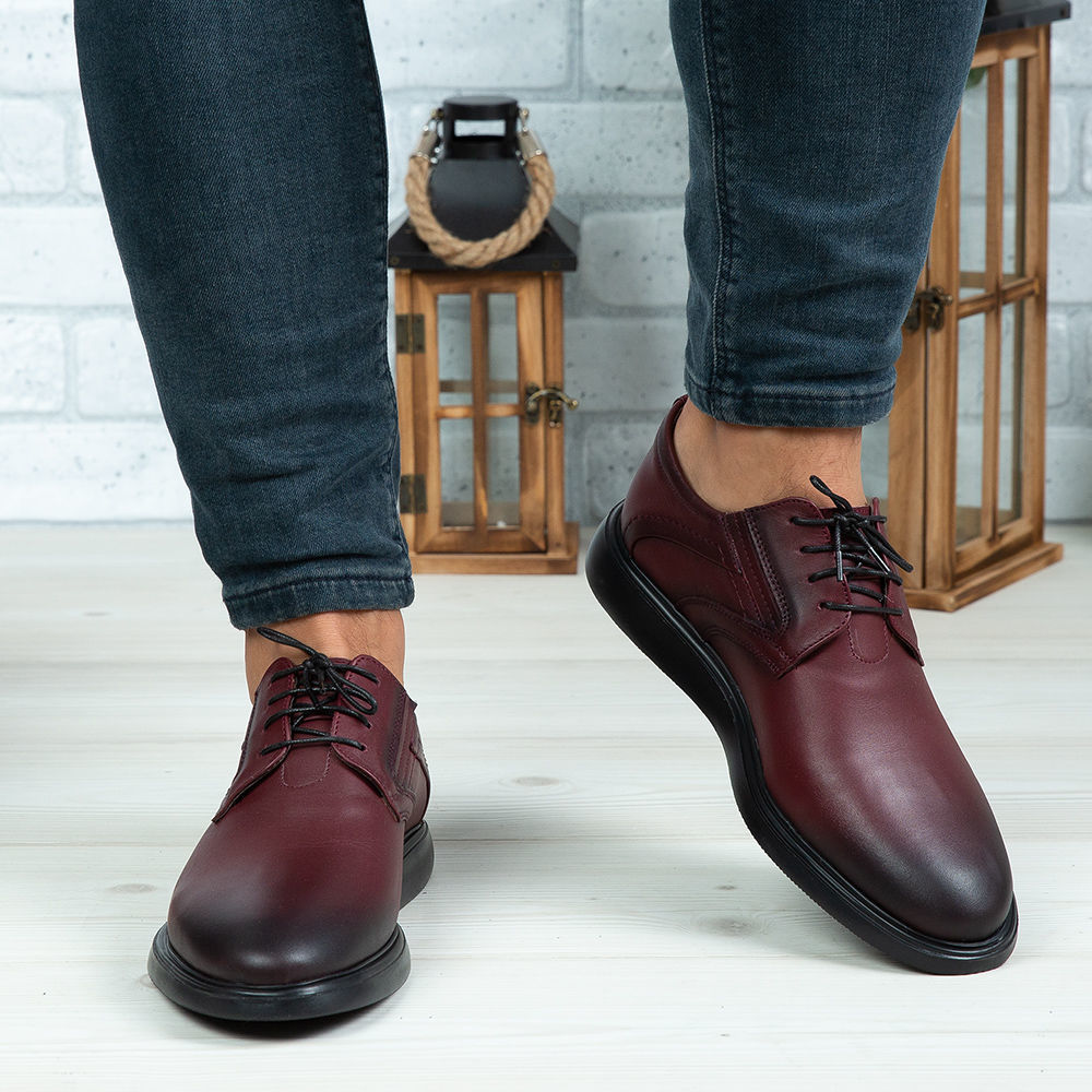 Pantofi casual bărbați piele naturală 552 Vișiniu