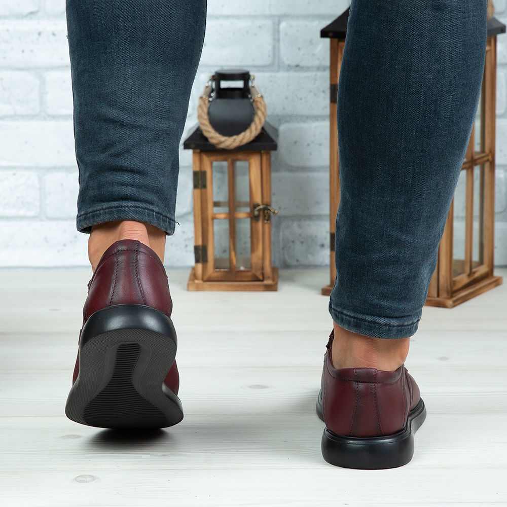Pantofi casual din piele naturală de culoare vișinie.