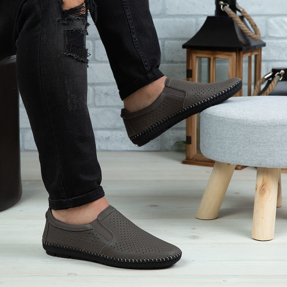 Mocasini bărbați din piele naturală de culoare gri.