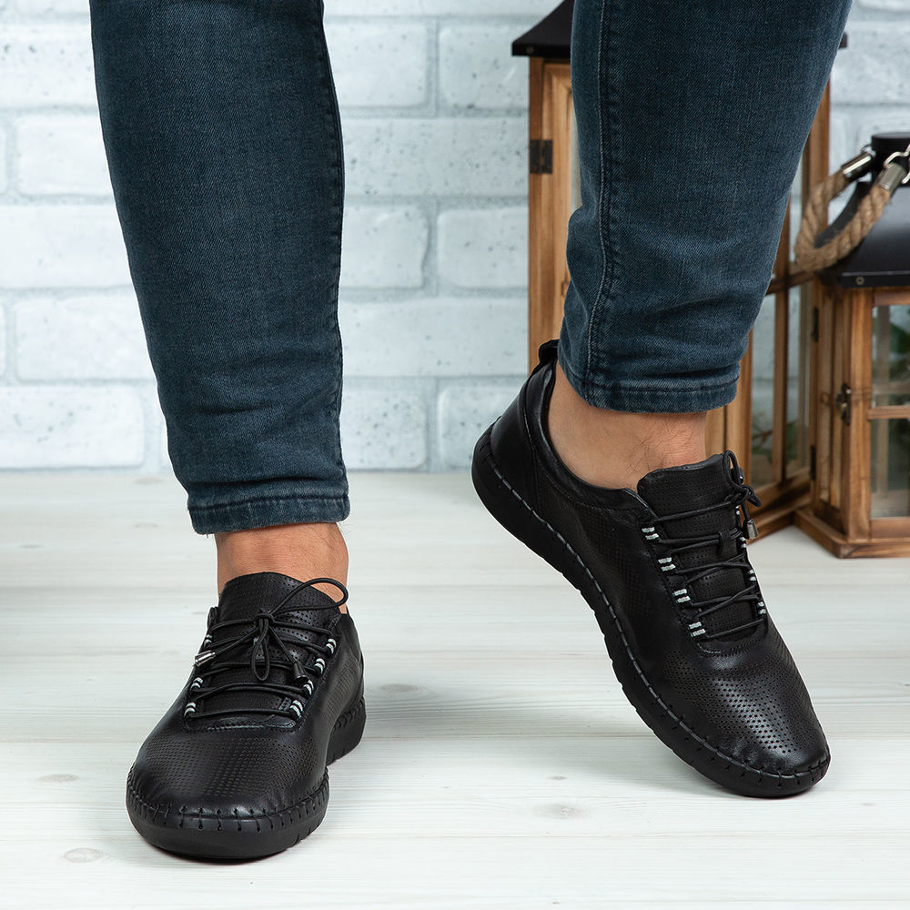 Pantofi casual din piele naturală de culoare neagră.