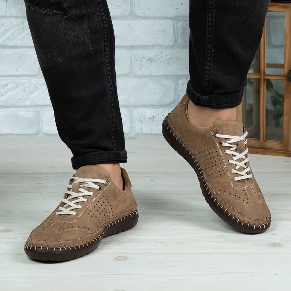 Pantofi casual din piele naturală de culoare bej-maro.