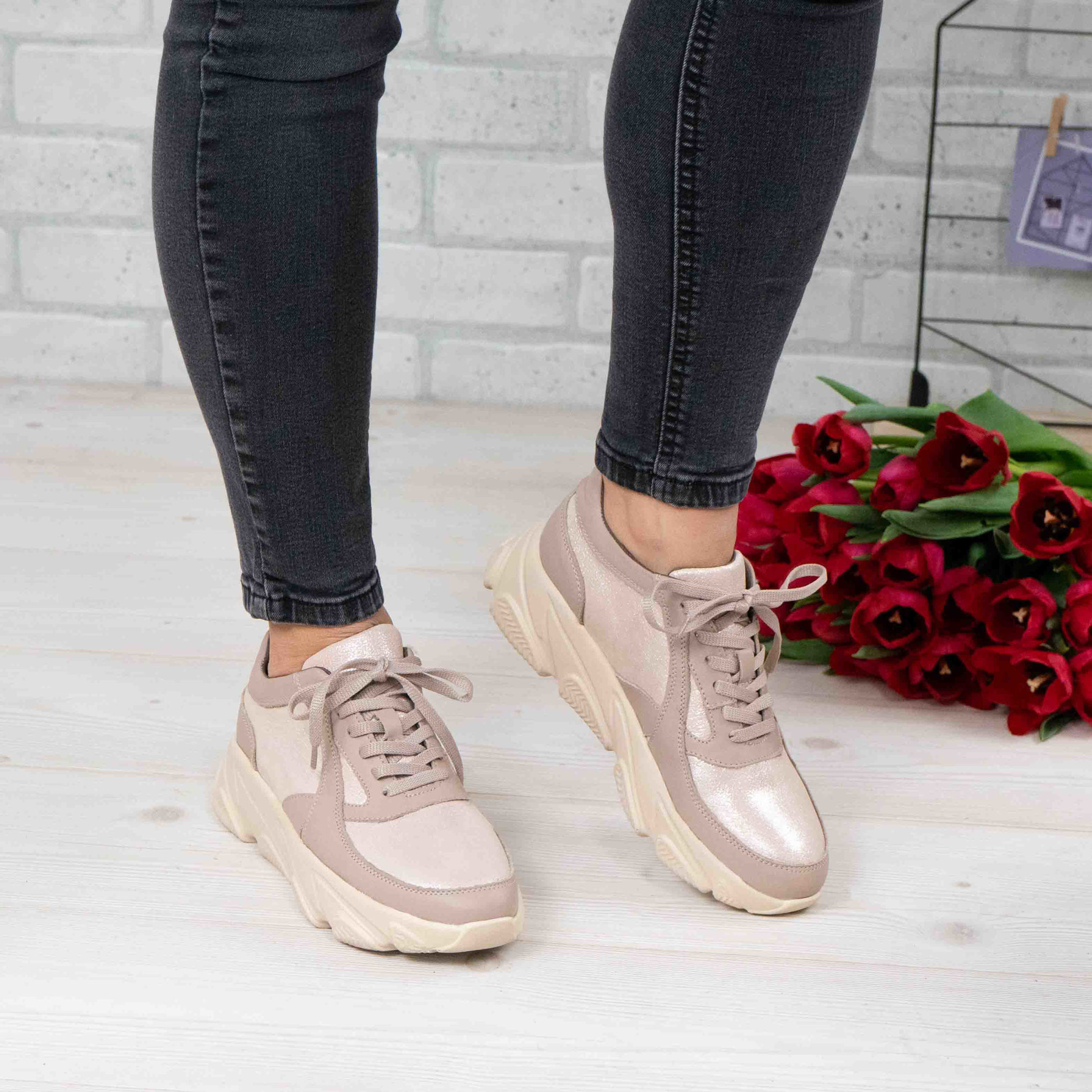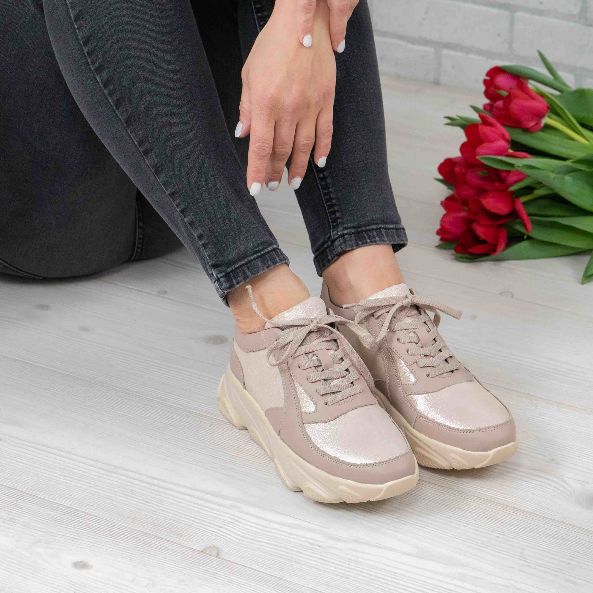 Pantofi damă din piele naturală de culoare bej, cu interior confortabil din piele naturală și talpă poliuretan PU.