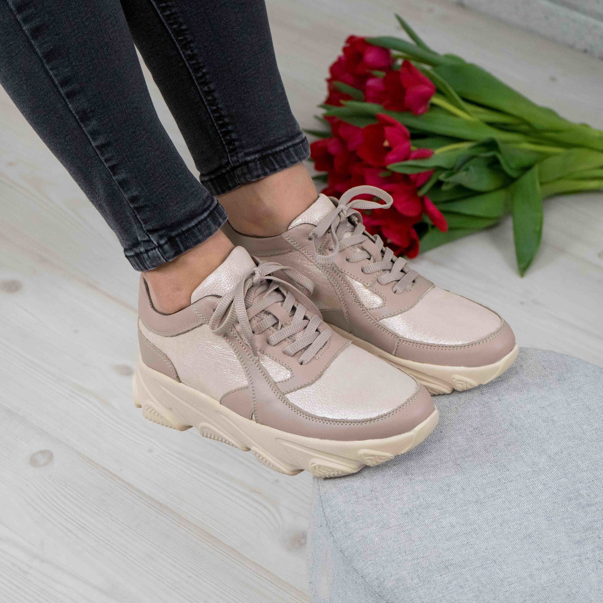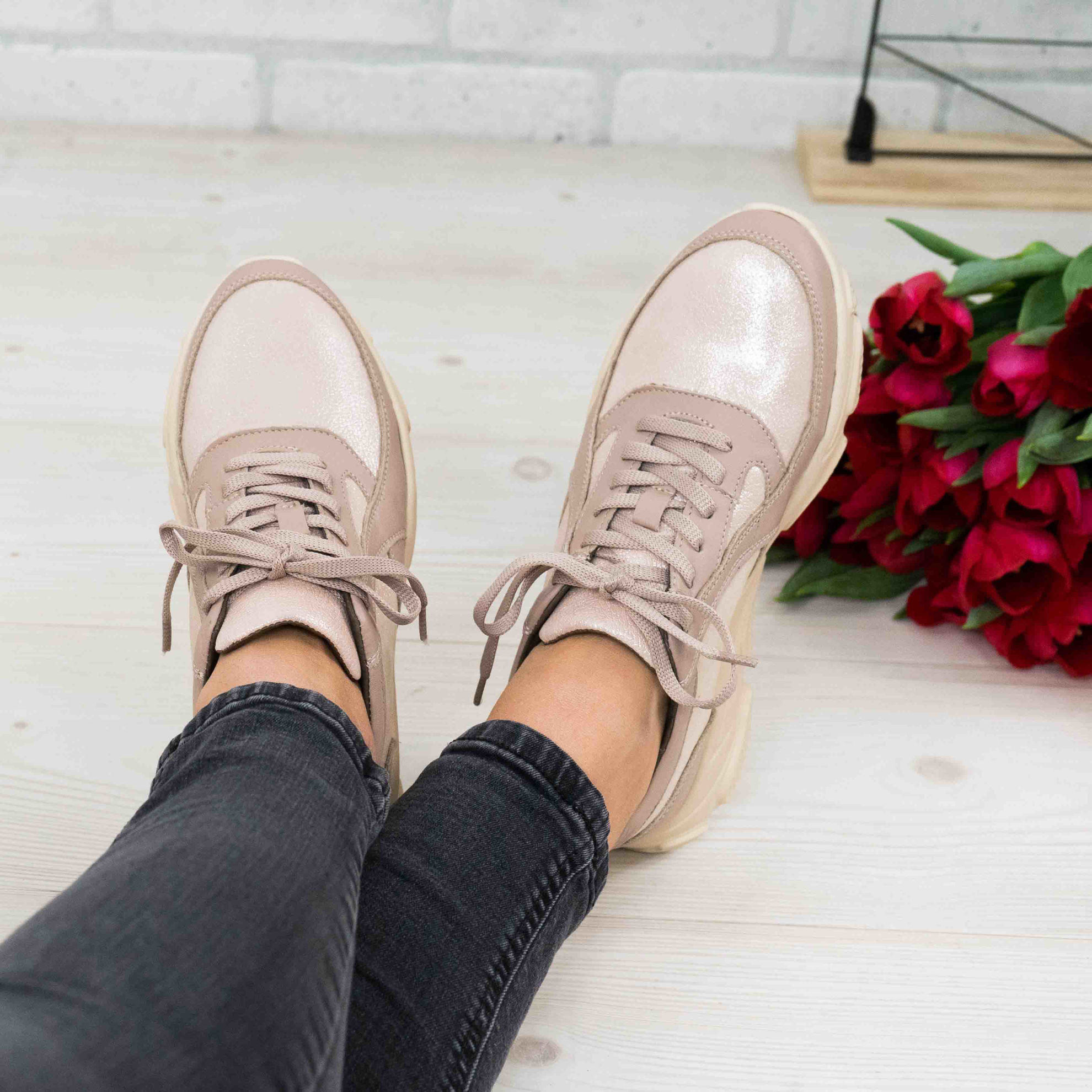 Pantofi damă din piele naturală de culoare bej.