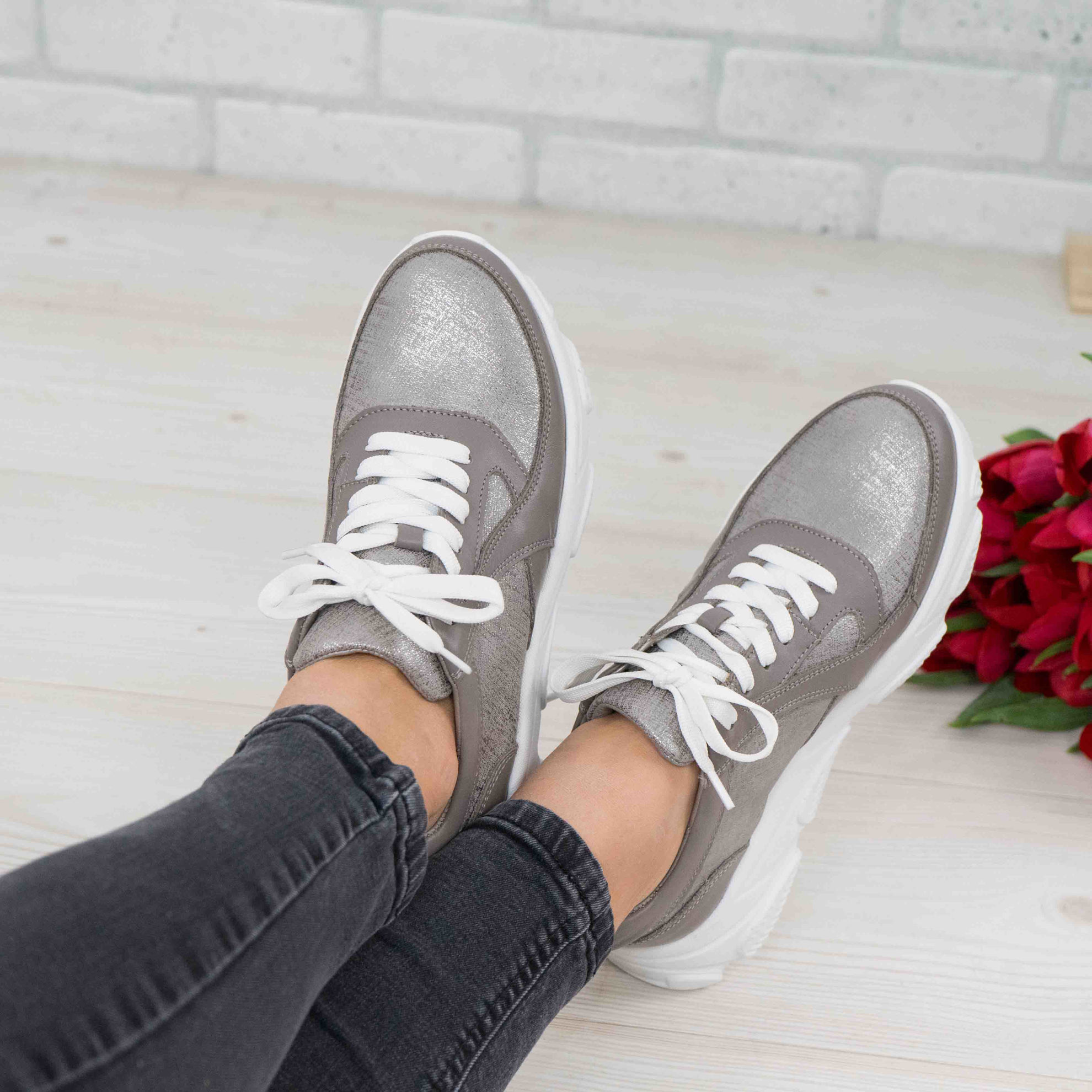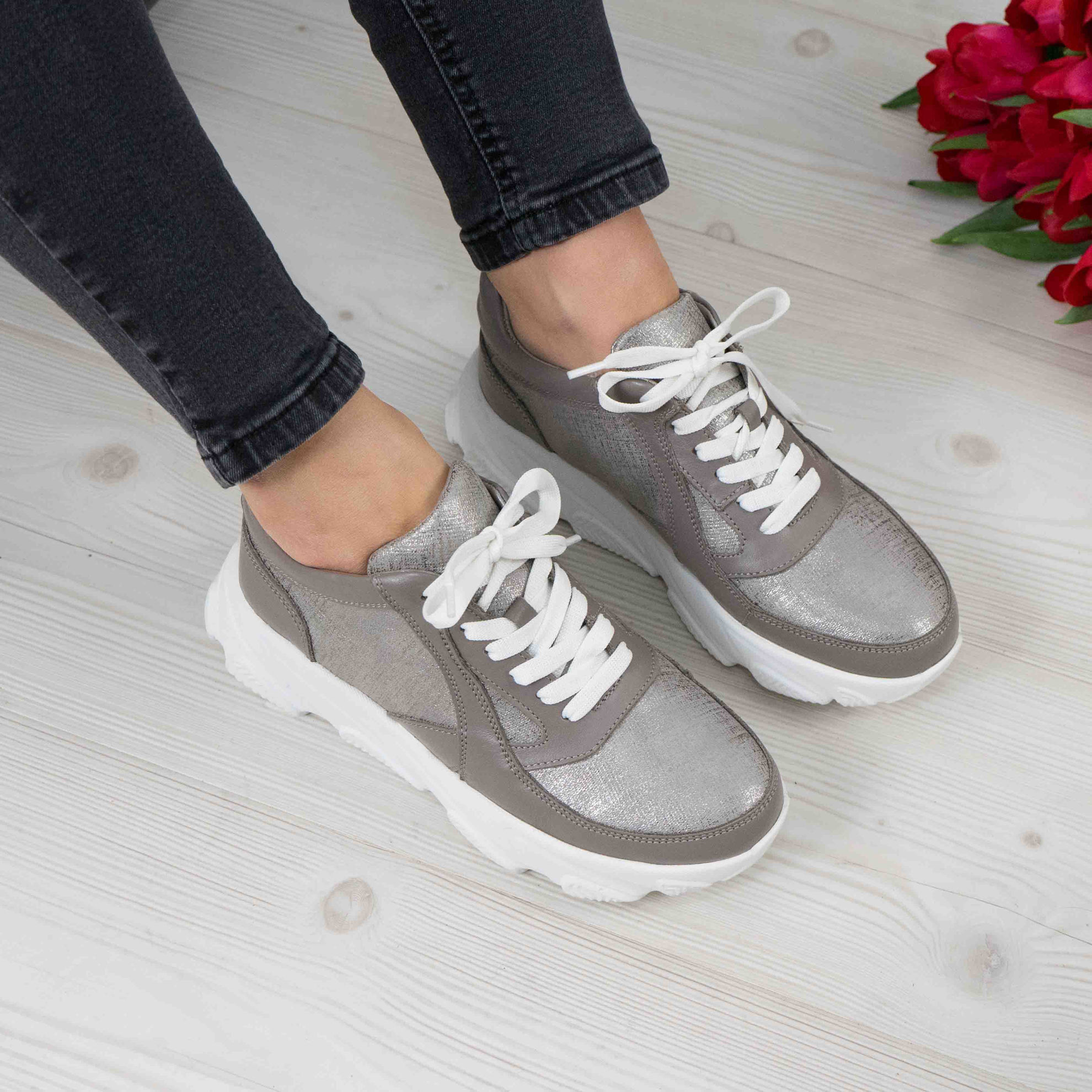 Pantofi damă din piele naturală de culoare GRI, cu interior confortabil din piele naturală și talpă poliuretan PU.