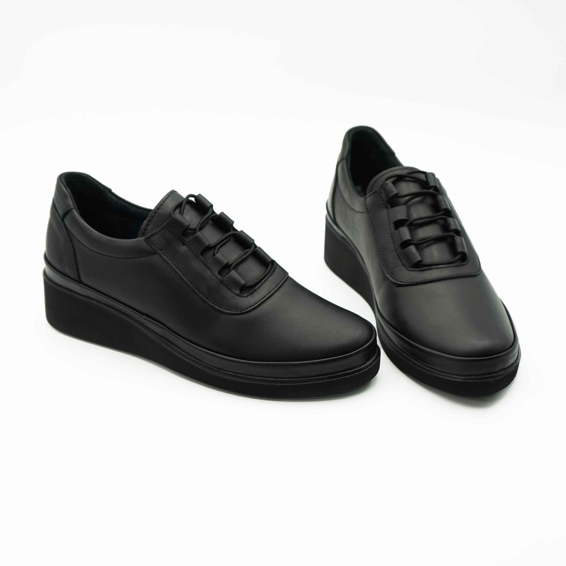 Pantofi damă din piele naturală de culoare neagră cu siret elastic.
