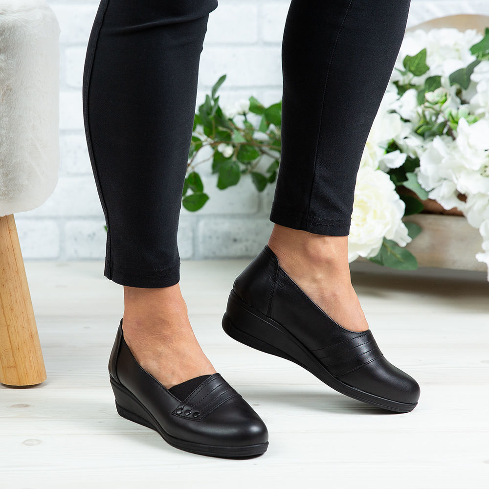 Pantofi damă din piele naturală de culoare neagră, cu interior confortabil din piele naturală și talpă din poliuretan PU.