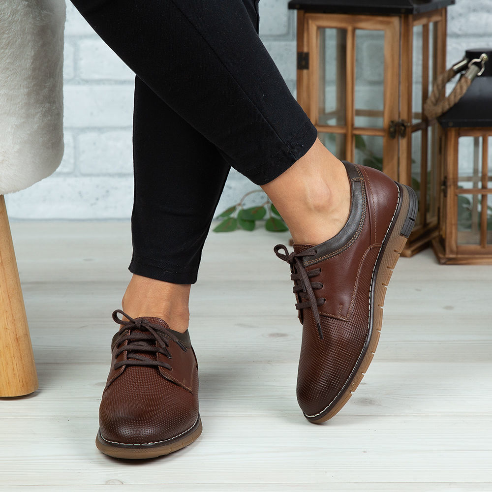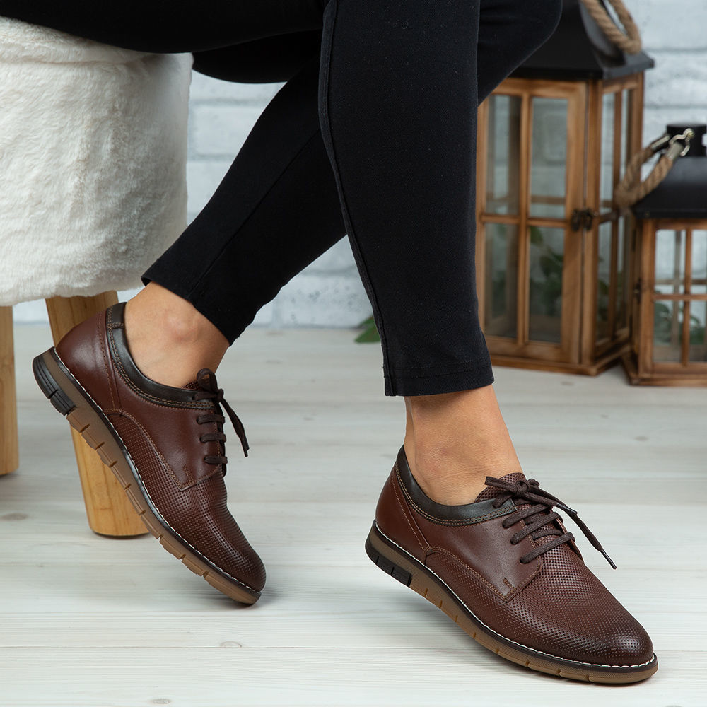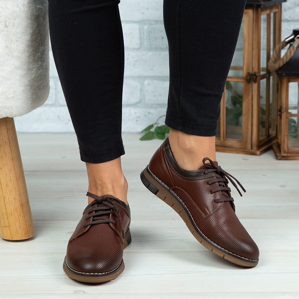Pantofi copii din piele naturală de culoare maro.