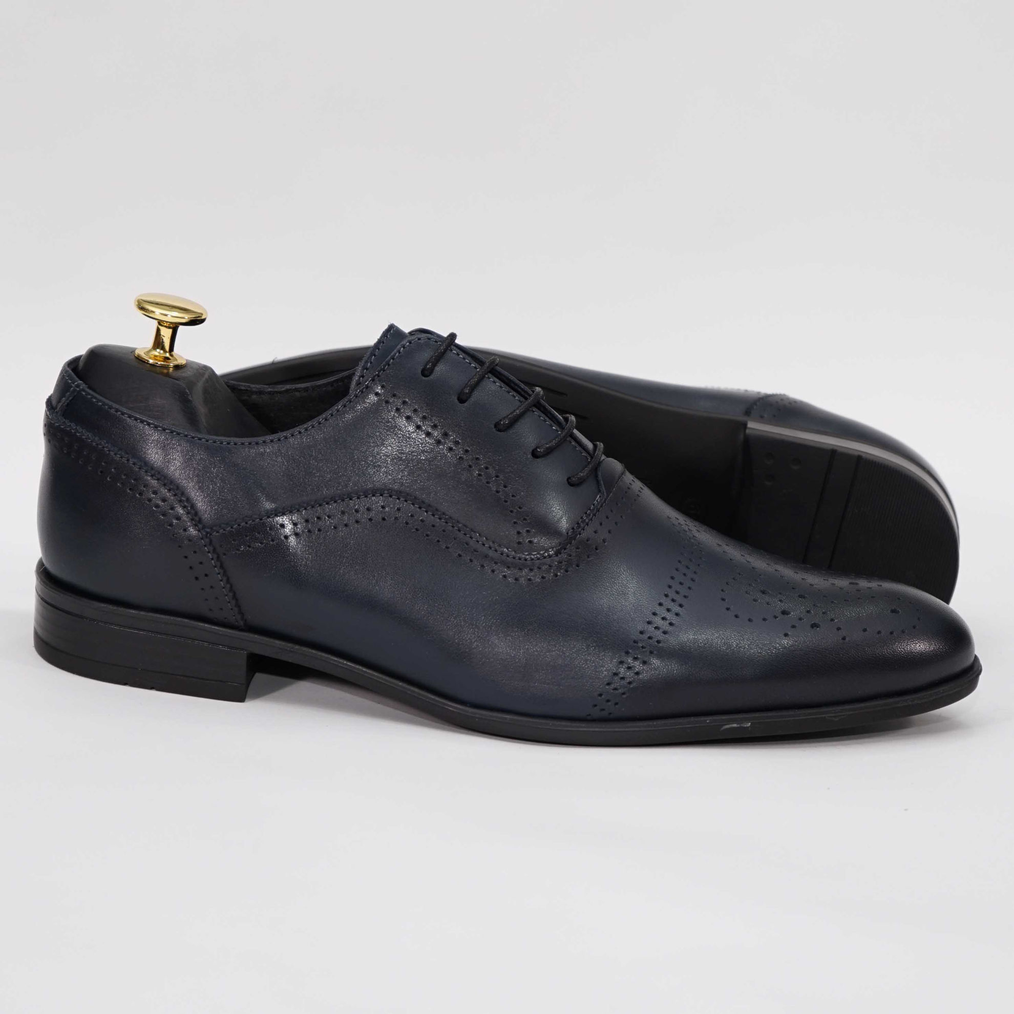 Pantofi eleganți bărbați din piele naturală de culoare bleumarin, cu interior confortabil din piele naturală și talpă  TR.