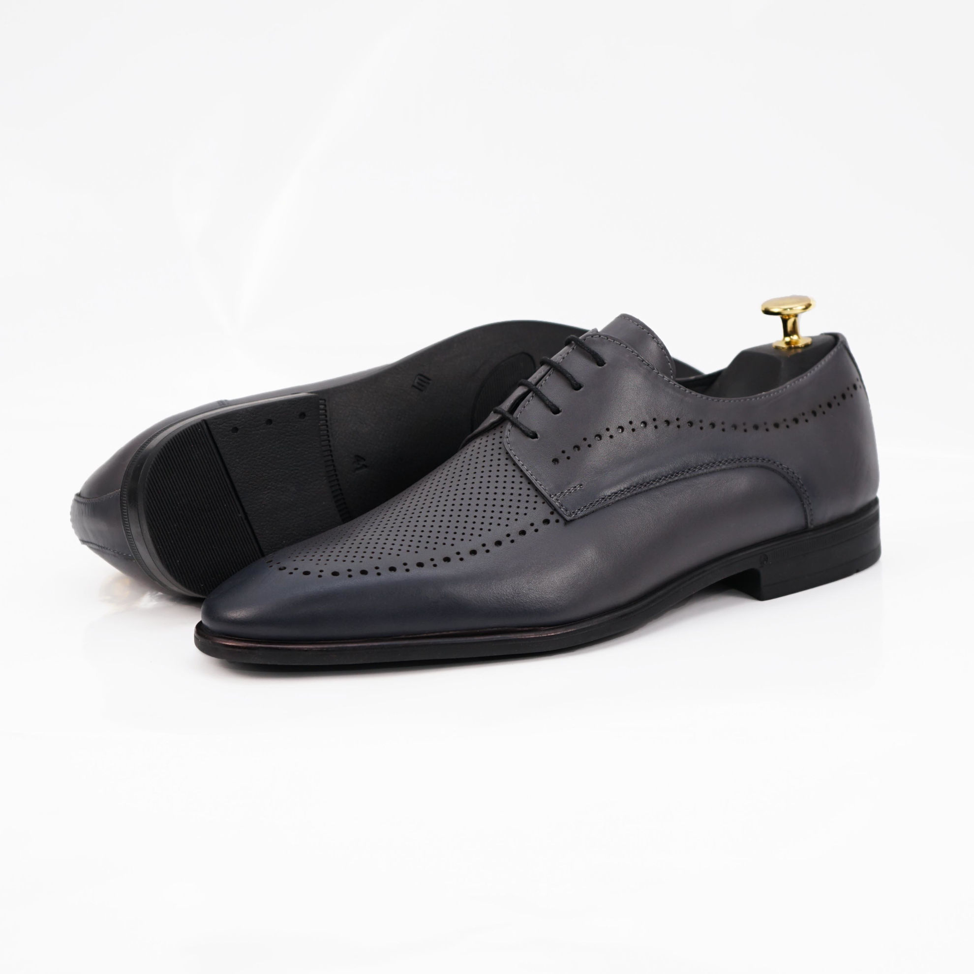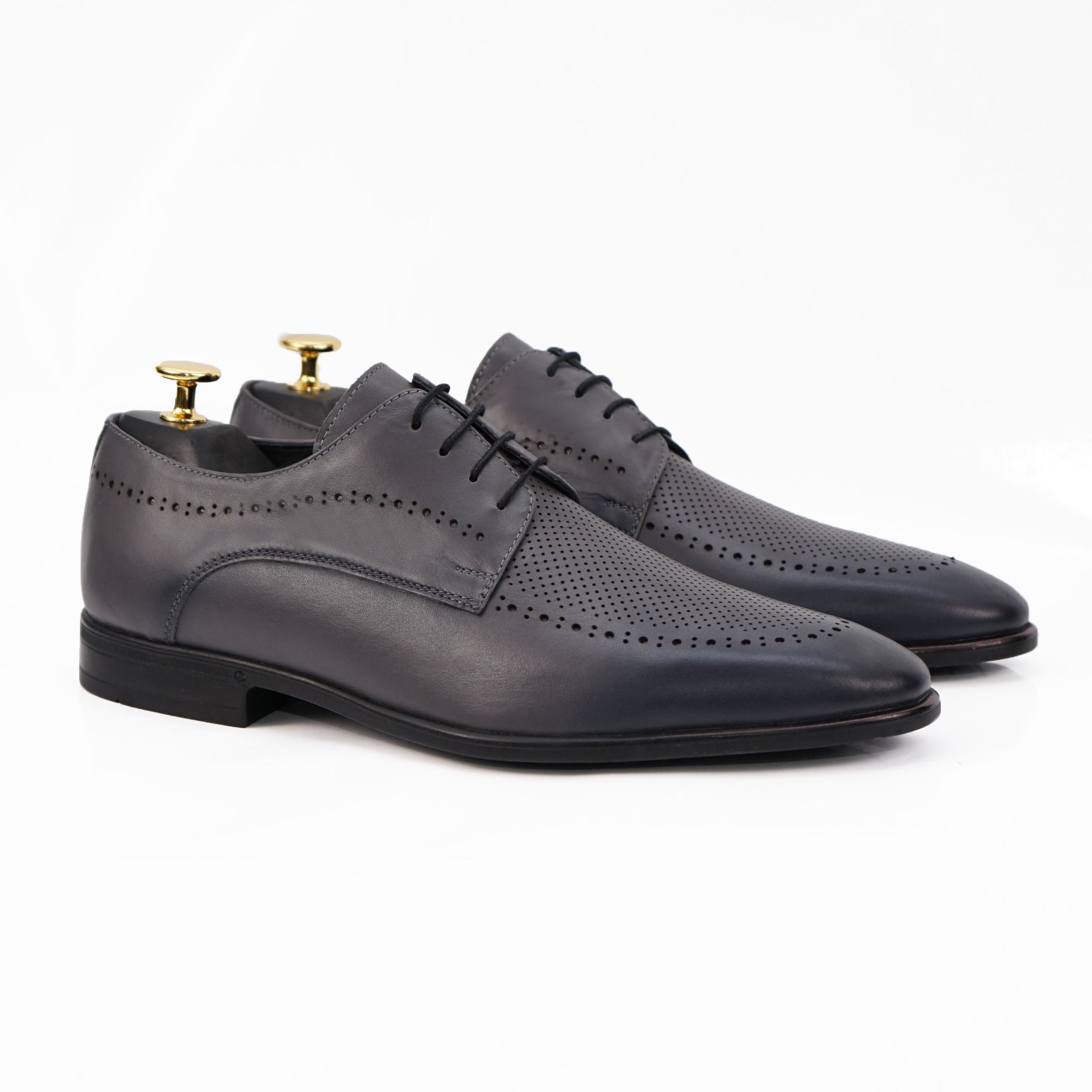 Pantofi eleganți bărbați din piele naturală de culoare gri, cu interior confortabil din piele naturală și talpă ușoară și flexibilă din cauciuc natural.