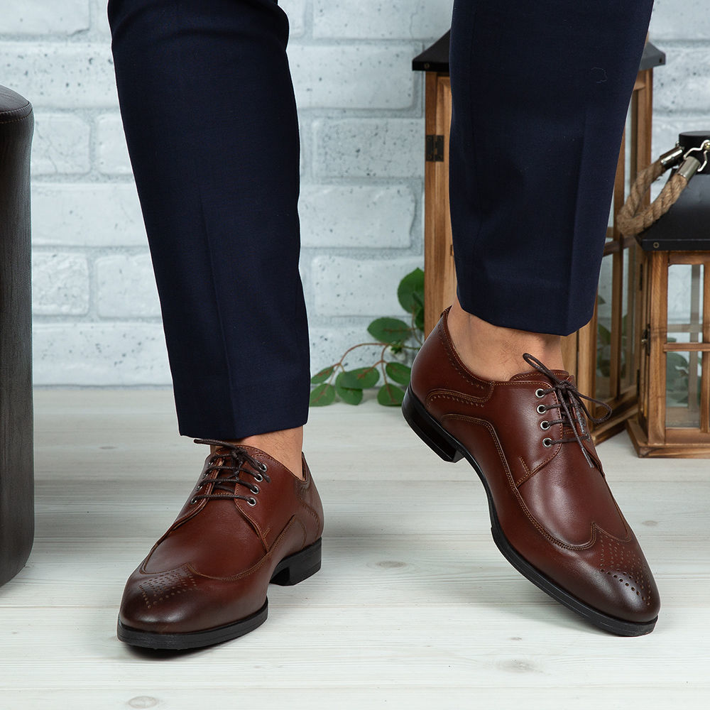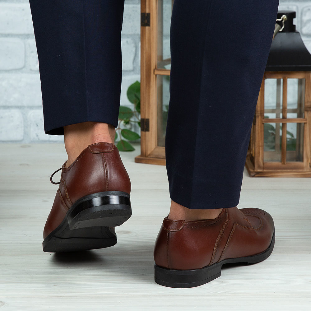 Pantofi eleganți bărbați din piele naturală de culoare maro, cu interior confortabil din piele naturală și talpă ușoară din TR.