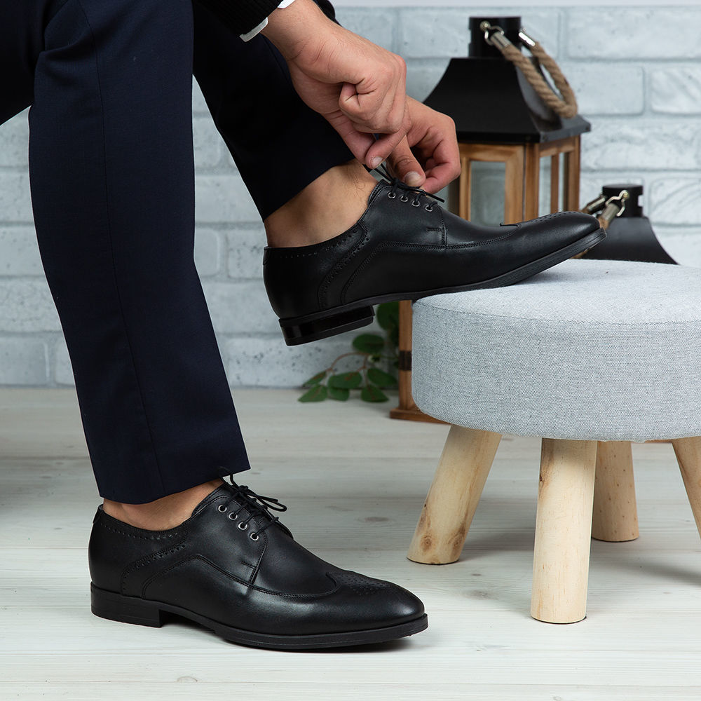 Pantofi eleganți bărbați din piele naturală de culoare neagră, cu interior confortabil din piele naturală și talpă ușoară din TR.
