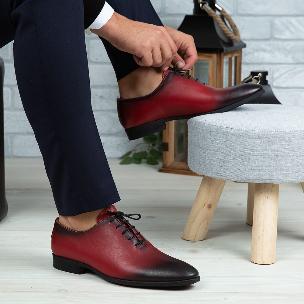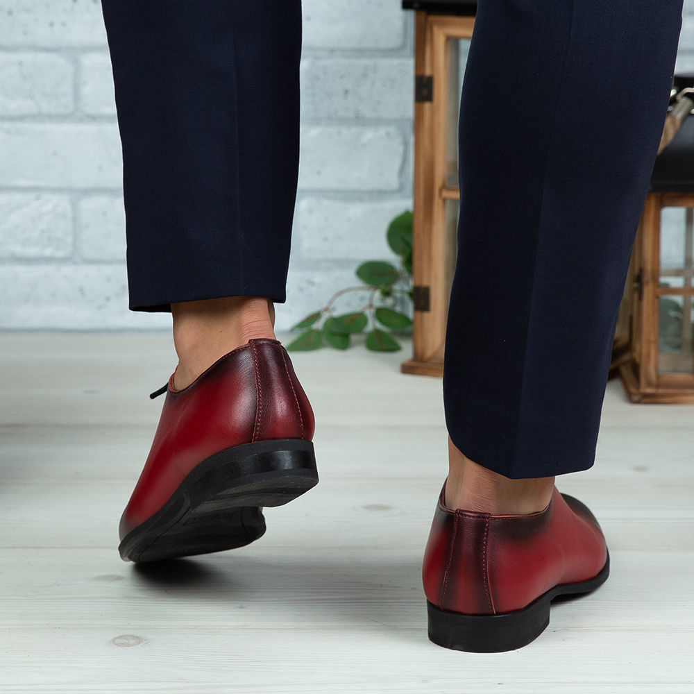 Pantofi eleganți bărbați din piele naturală de culoare roșie, cu interior confortabil din piele naturală și talpă ușoară din TR.