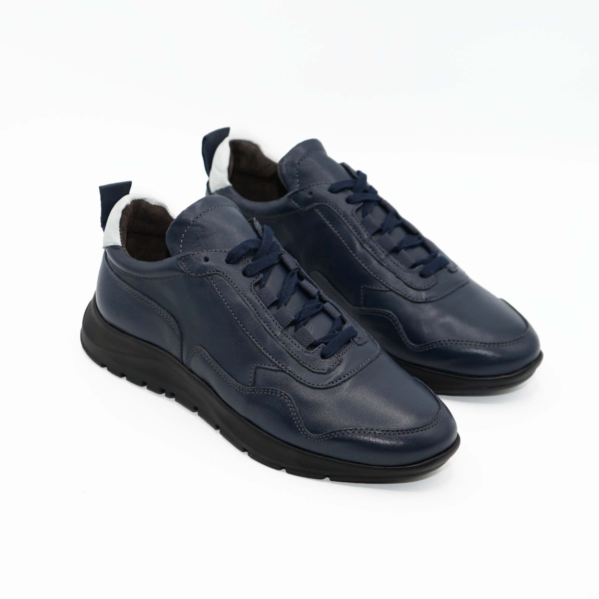 Adidasi bărbați din piele naturală de culoare bleumarin cu talpa flexibilă din poliuretan