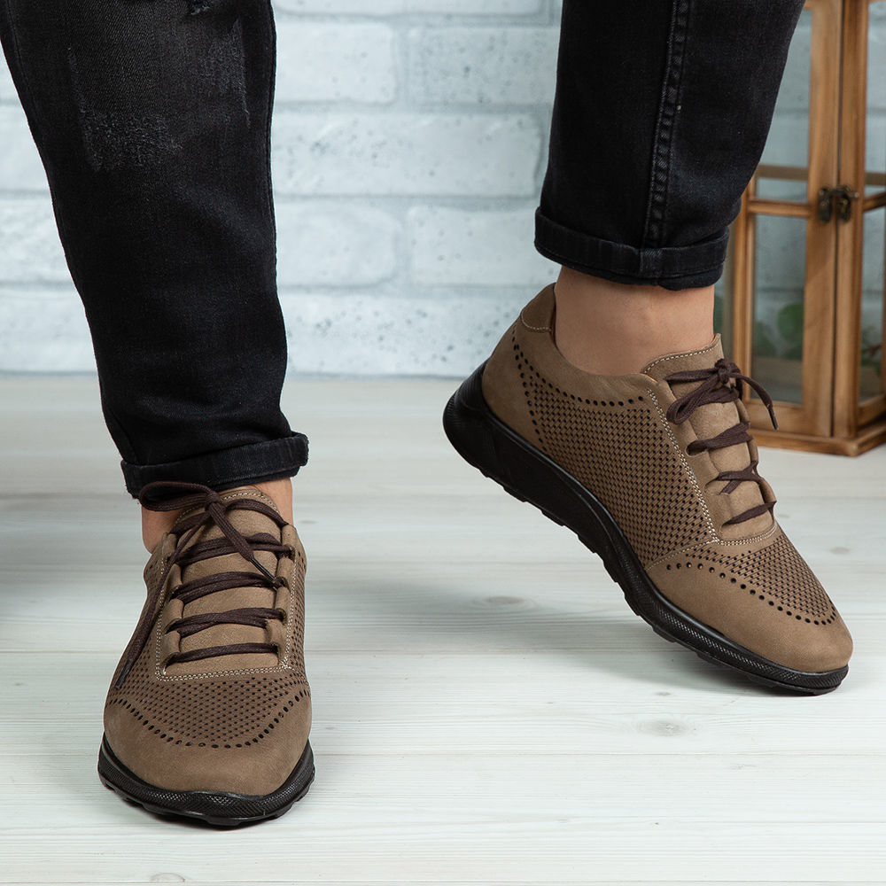Pantofi sport bărbați din piele naturală de culoare bej, cu interior confortabil din piele naturală și talpă ușoară din poliuretan .