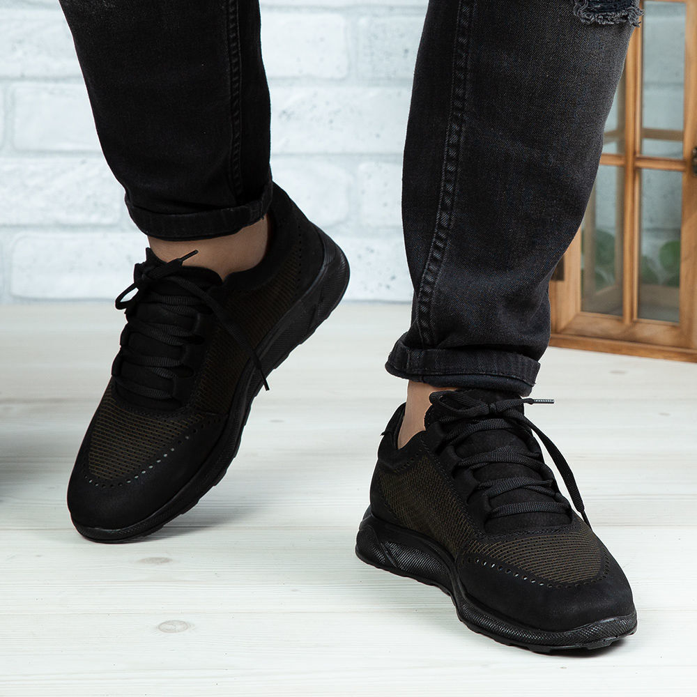Pantofi sport bărbați din piele naturală de culoare neagră, cu interior confortabil din piele naturală și talpă ușoară din poliuretan .