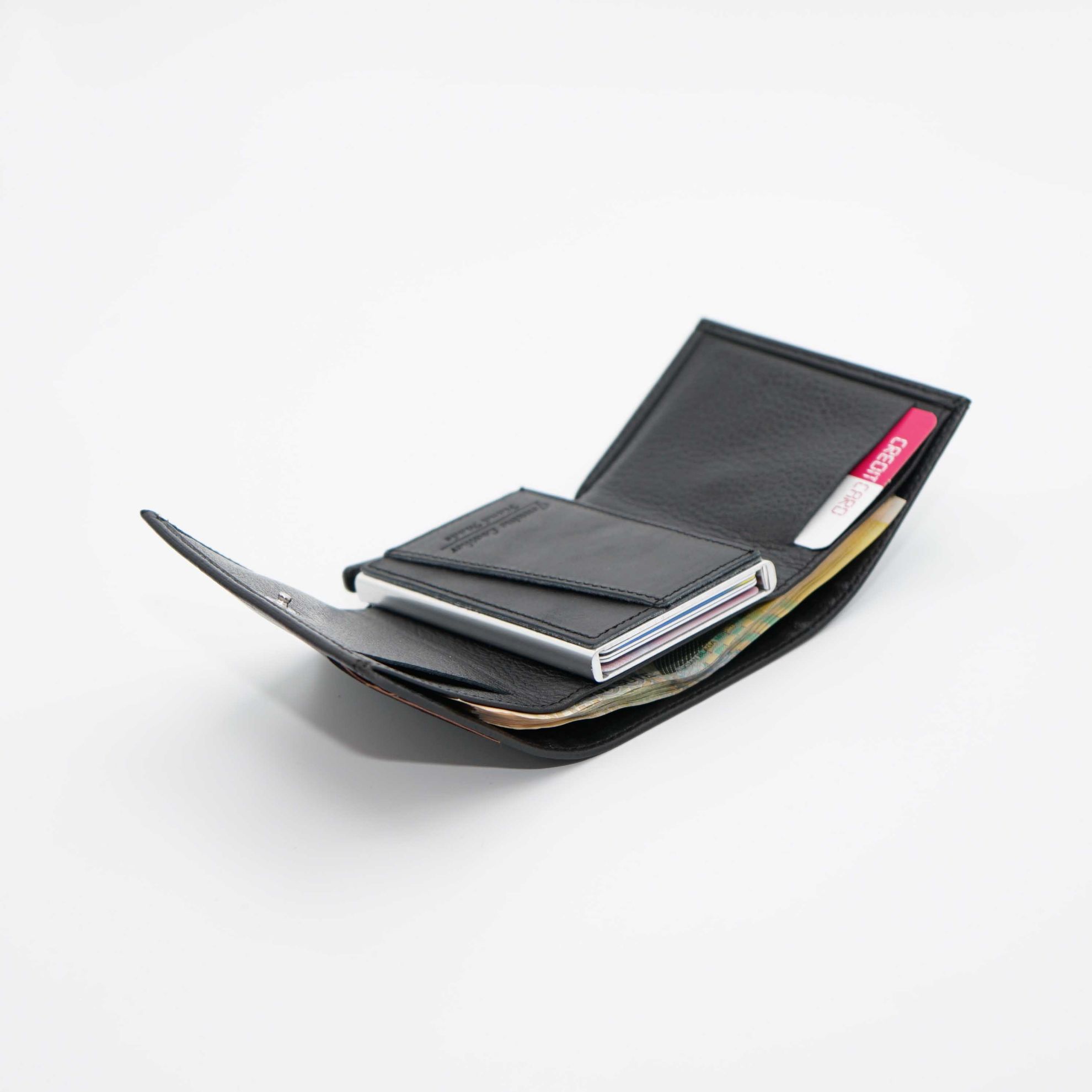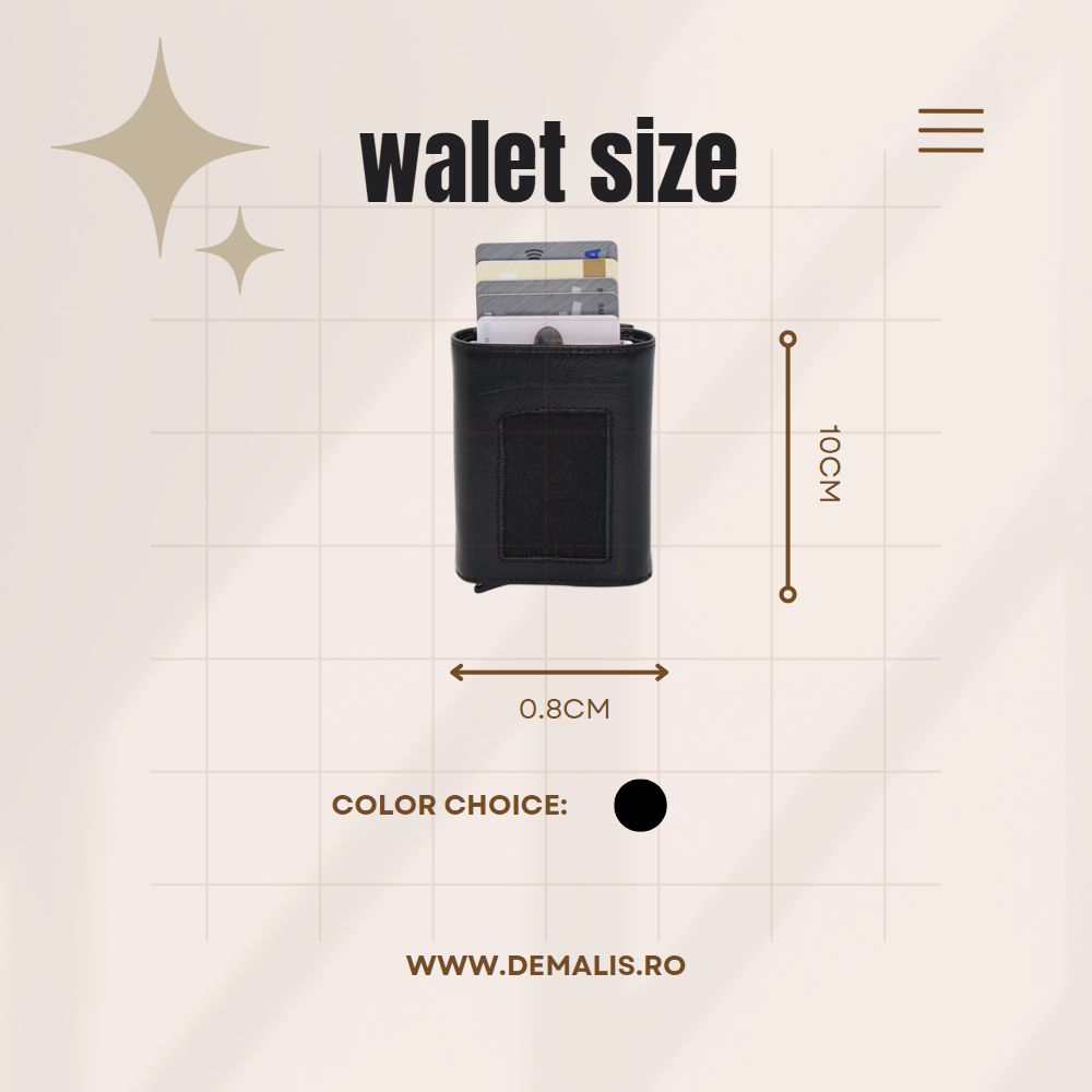 Subtire si usor: exista spatiu pentru pana la 6 carduri + 4 sloturi suplimentare pentru carduri in interior si un compartiment pentru bancnote.