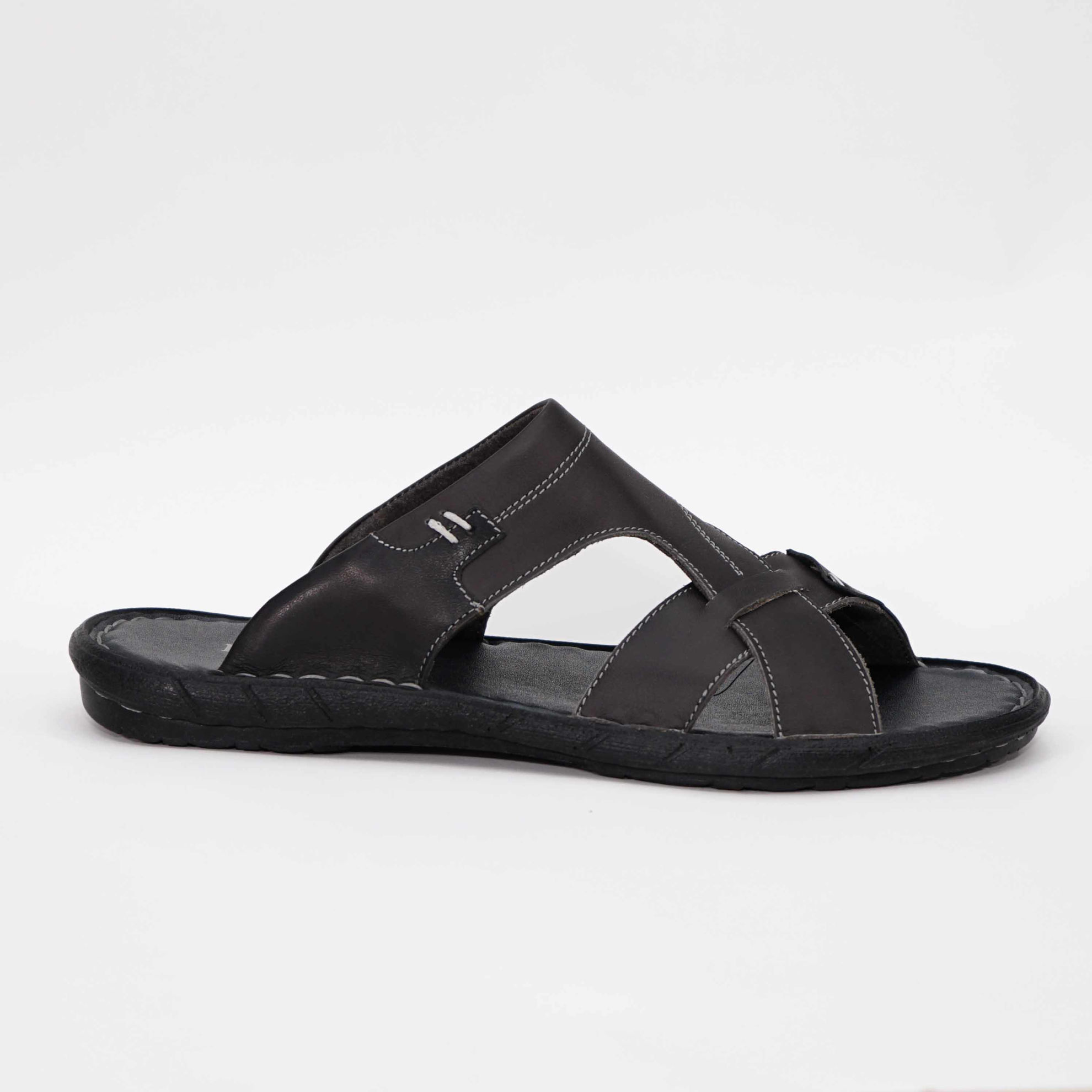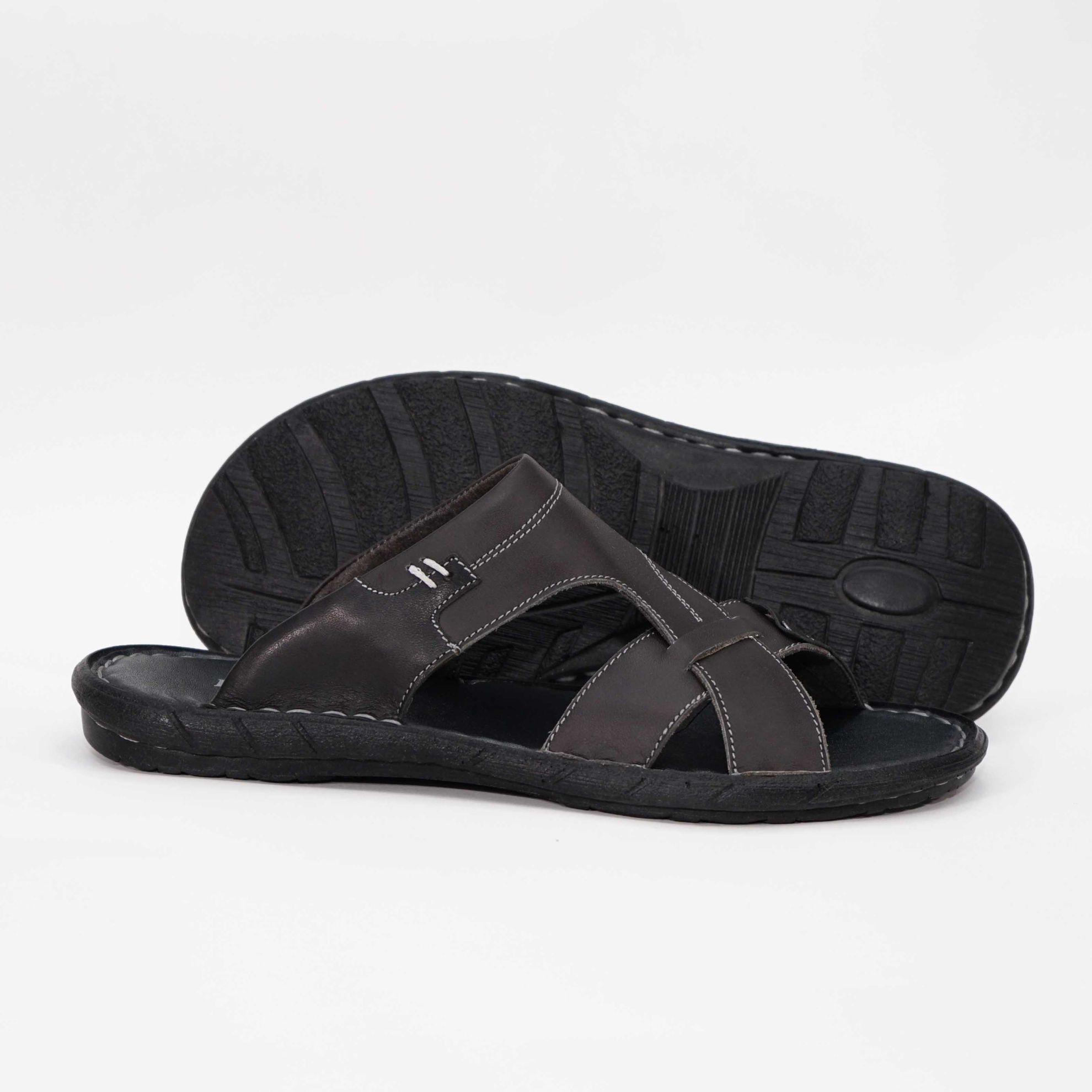 Saboti bărbați din piele naturală de culoare negru, cu talpă cusută manual, ușoară și flexibilă din poliuretan